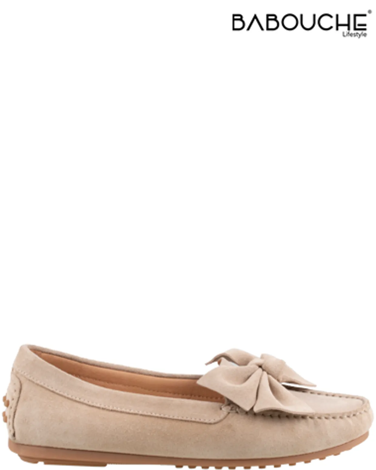 Babouche mocassins. Deze Babouche Naomi Mocassins zijn vervaardigd uit een combinatie van materialen en hebben een binnenvoering van leer. Deze trendy dames mocassins zijn afgewerkt met een rubberen loopzool en een hak met een hakhoogte van ongeveer 1 cm. Verkrijgbaar in de kleuren beige en taupe.