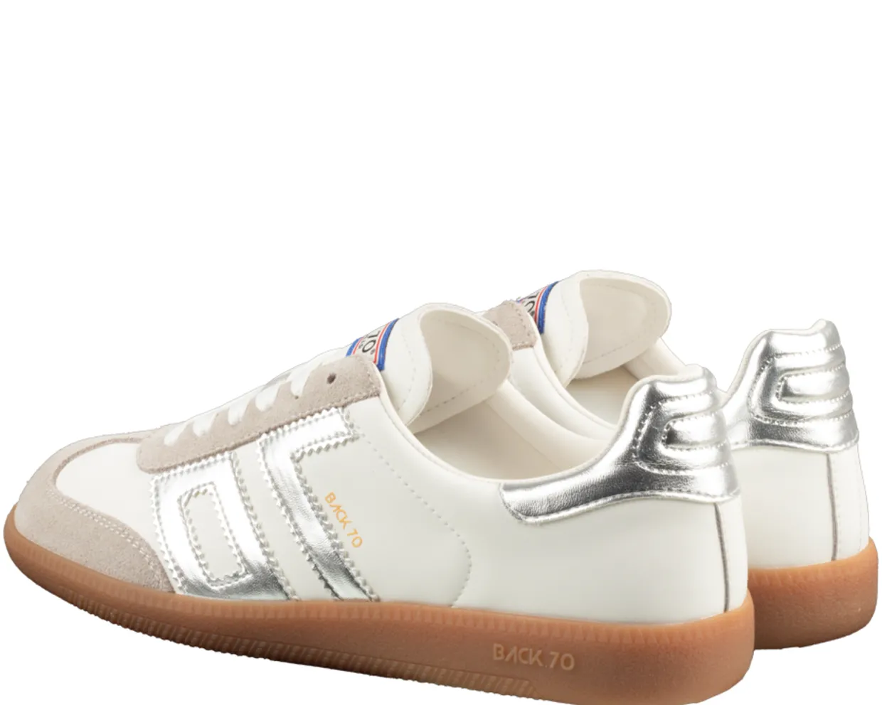 Back 70 sneakers. Deze Back 70 Cloud 2505 sneakers zijn vervaardigd uit een combinatie van materialen met een textiele binnenvoering. De zilver kleurige trendy dames sneakers zijn voorzien van veters, een uitneembare zool en een rubberen loopzool. Verkrijgbaar in zilver kleurig.