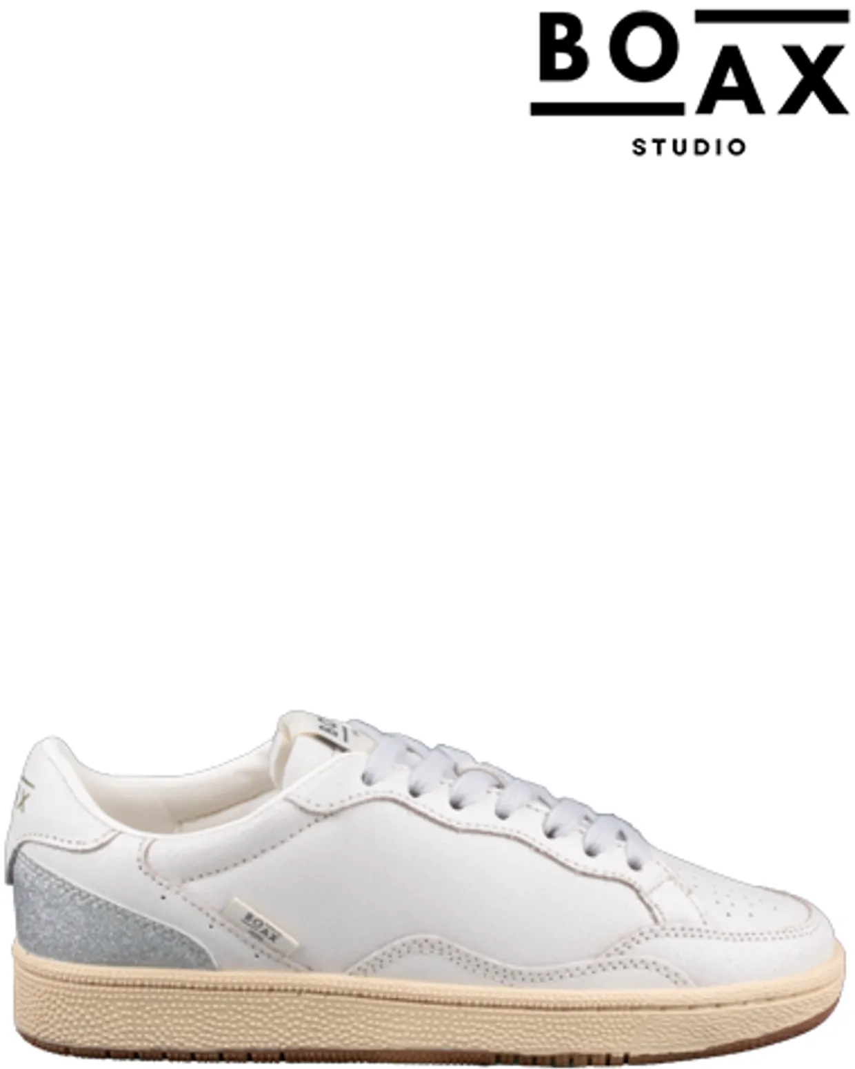 Boax Studio sneakers. Deze Boax Studio Ace sneakers zijn vervaardigd uit leer en hebben een binnenvoering bestaand uit een combinatie van materialen. De witte, stijlvolle dames sneakers zijn voorzien van veters, een uitneembaar voetbed en een rubberen loopzool. Verkrijgbaar in het wit.