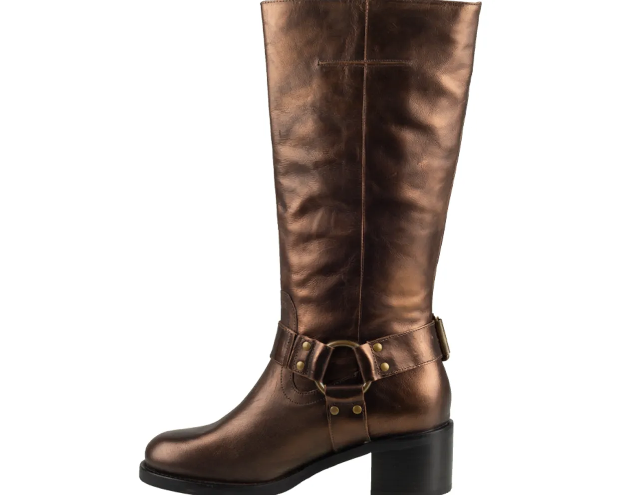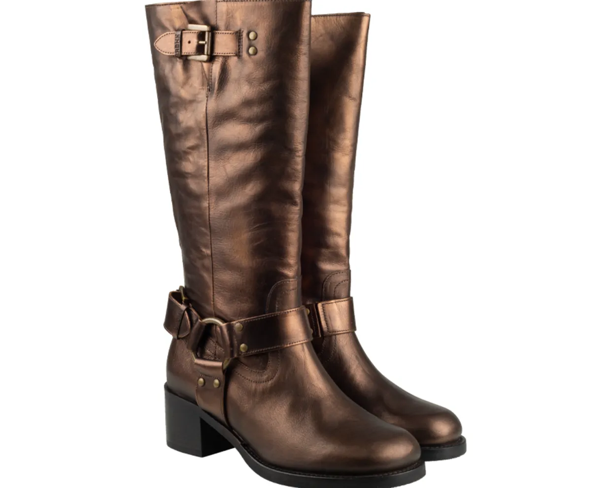 Bronx Laarzen. Deze Bronx Camperos Laarzen zijn vervaardigd uit leer en hebben een leren binnenvoering. Deze stoere metallic dames laarzen zijn afgewerkt met een blokhak van ongeveer 5 cm, een rubberen zool en een sier riem rond de enkel. verkrijgbaar in de kleuren zilver en goud.