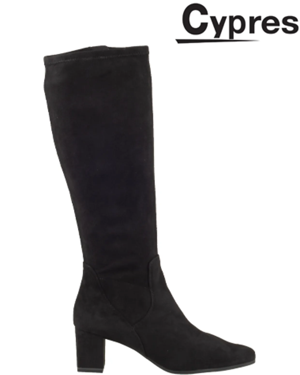 Cypres Laarzen. Deze Cypres Ursule Laarzen zijn vervaardigd uit een suede look stretch materiaal en hebben een binnenvoering van textiel. Deze trendy dames laarzen zijn afgewerkt met een rubberen loopzool en een blokhak met een hakhoogte van ongeveer 5 cm.