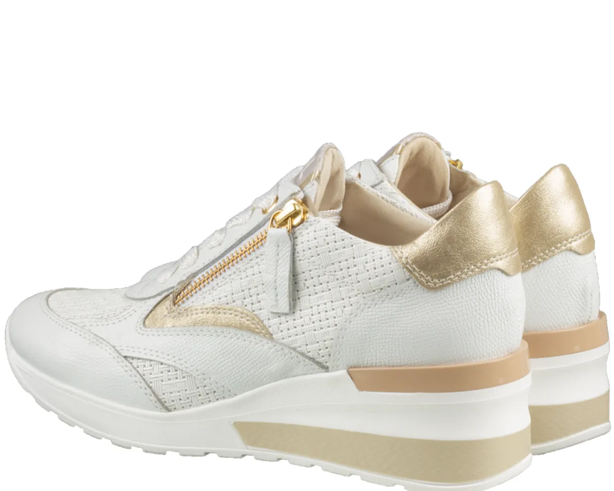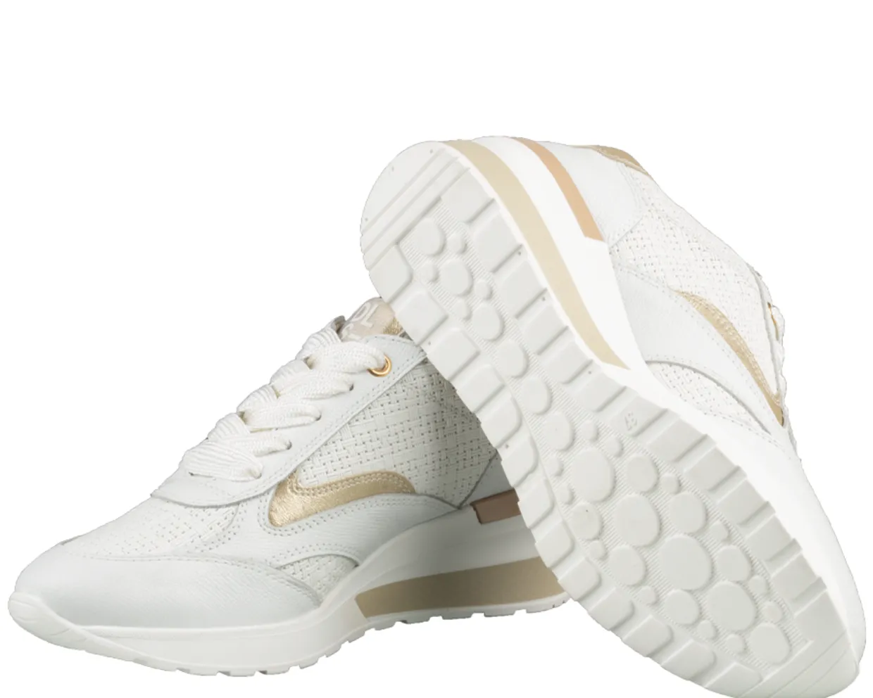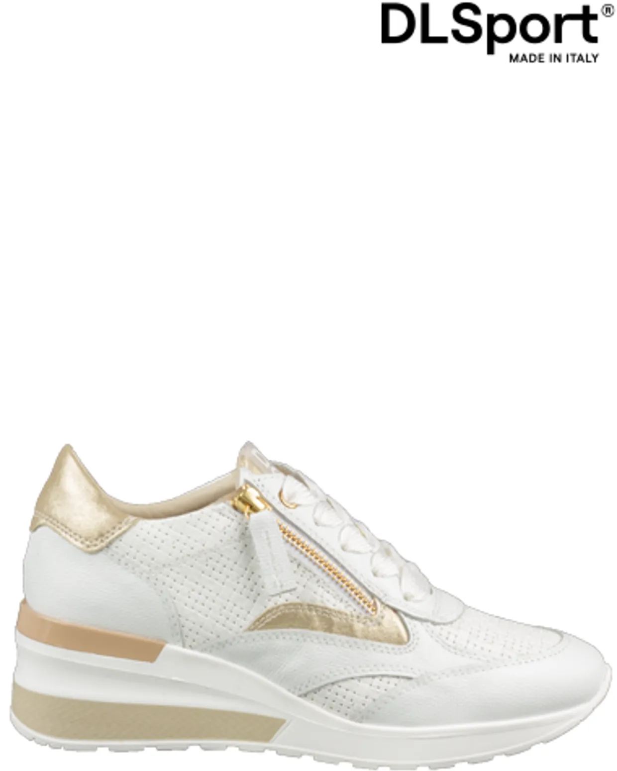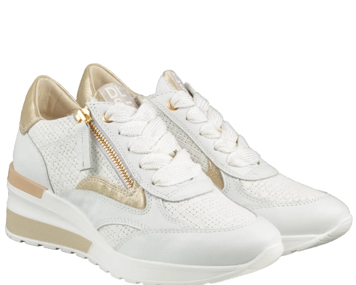 DL Sport sneakers. Deze DL Sport 6576 sneakers zijn vervaardigd uit een combinatie van materialen en hebben een leren binnenvoering. De witte trendy dames sneakers zijn voorzien van veters, een uitneembaar voetbed en een rubberen loopzool. Verkrijgbaar in wit.