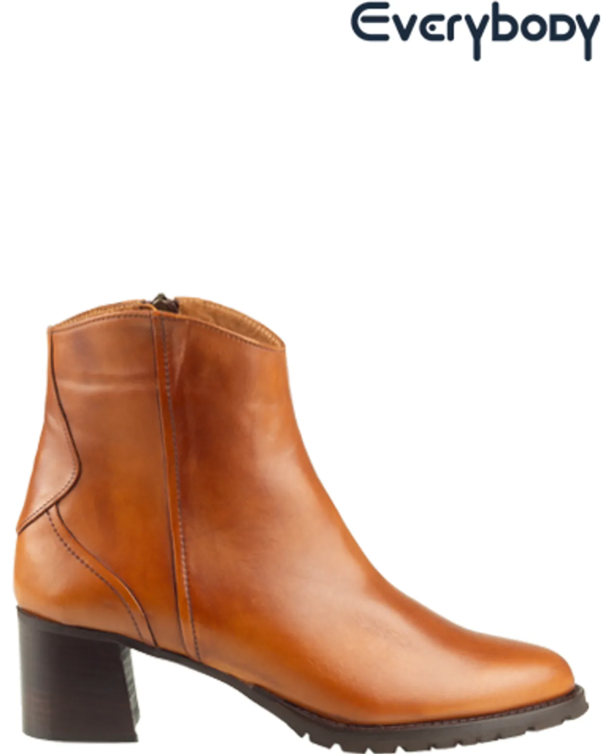 Everybody Enkellaarzen. Deze Everybody Elvia Enkellaarzen zijn vervaardigd uit leer en hebben een binnenvoering van imitatie bont. Deze comfortabele dames laarsjes zijn afgewerkt met een blok hak met een hakhoogte van ongeveer 5 cm en hebben een loopzool van rubber. Verkrijgbaar in de kleuren zwart en cognac.