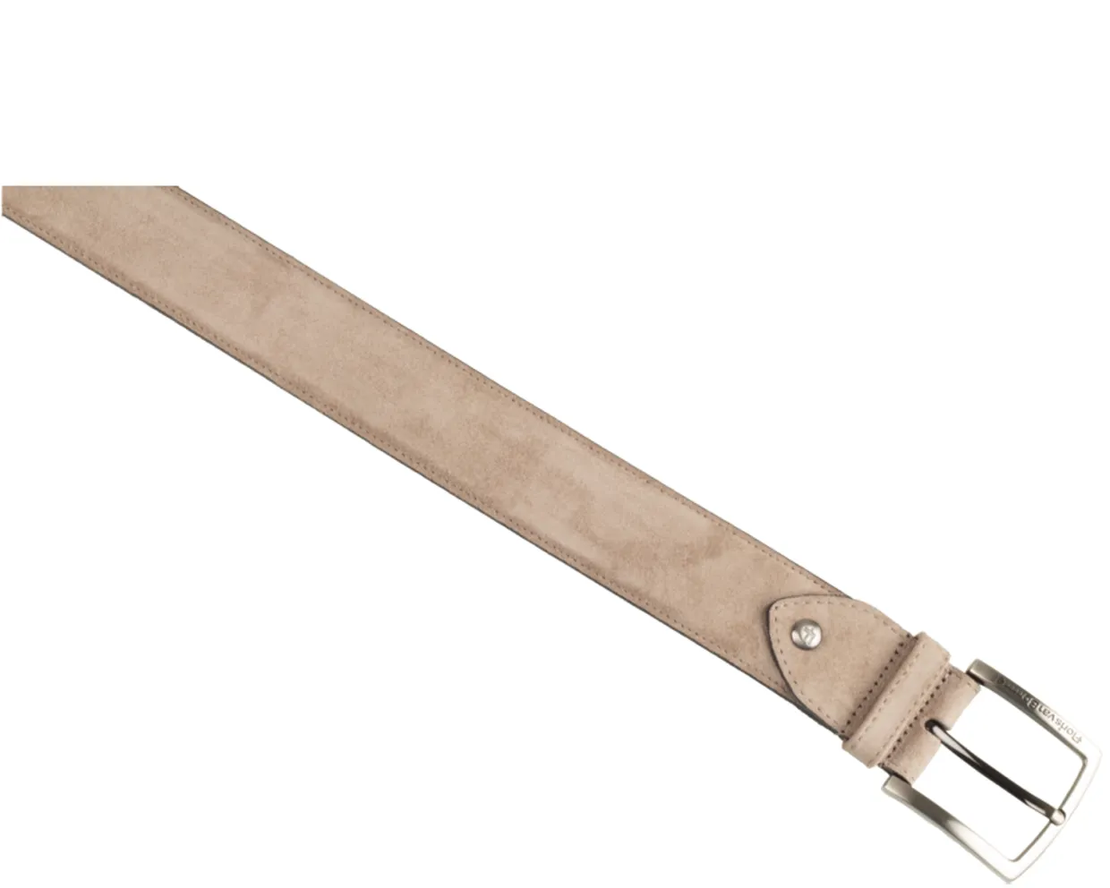 Floris van Bommel riem. Deze Floris van Bommel De Belter 66.66 Riem is vervaardigd uit suède en is voorzien van een zilverkleurige gespsluiting. Verkrijgbaar in het beige en taupe.