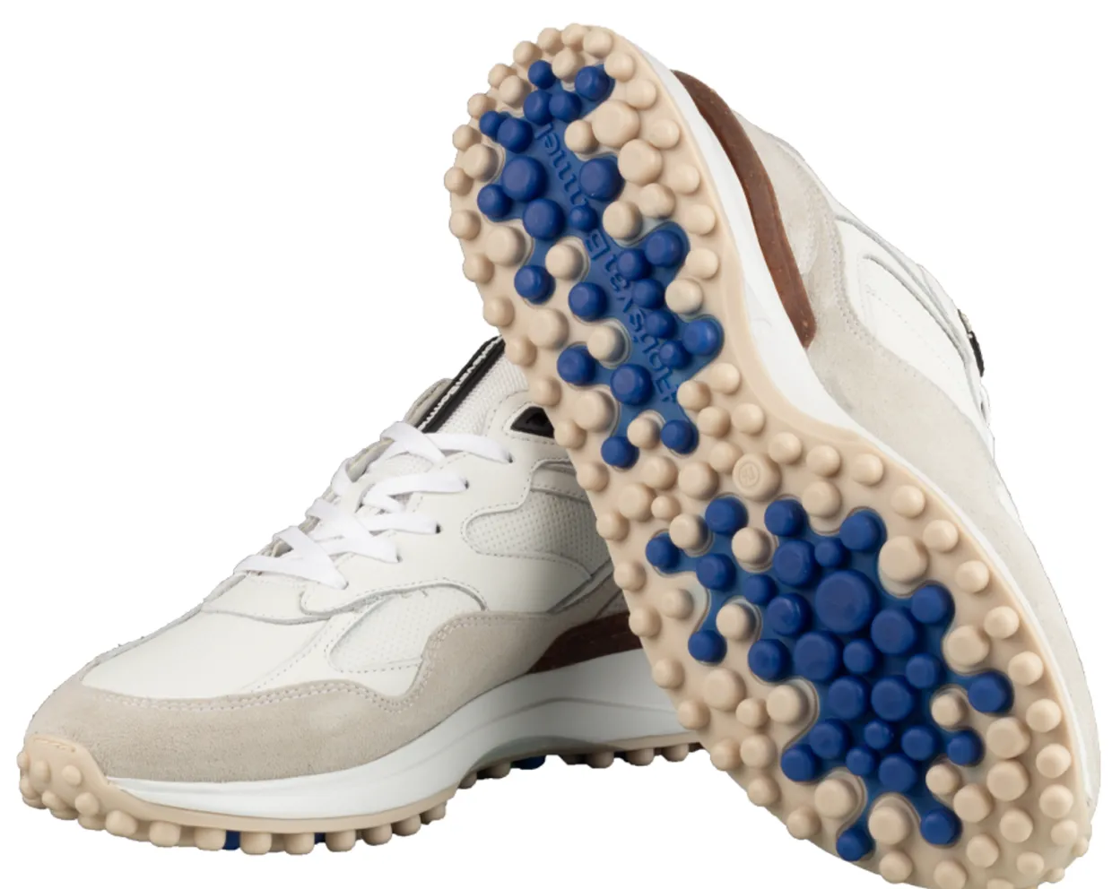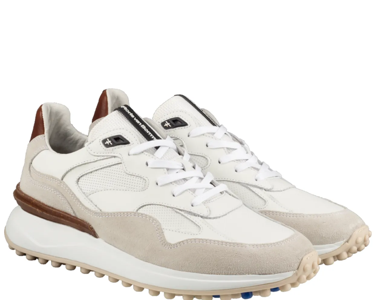 Floris van Bommel sneakers. Deze Floris van Bommel Noppi 18.03 Sneakers zijn vervaardigd uit een combinatie van verschillende materialen en hebben een leren binnenvoering. De sportieve, witte heren sneakers zijn voorzien van een uitneembaar voetbed en afgewerkt met een rubberen loopzool met noppen.