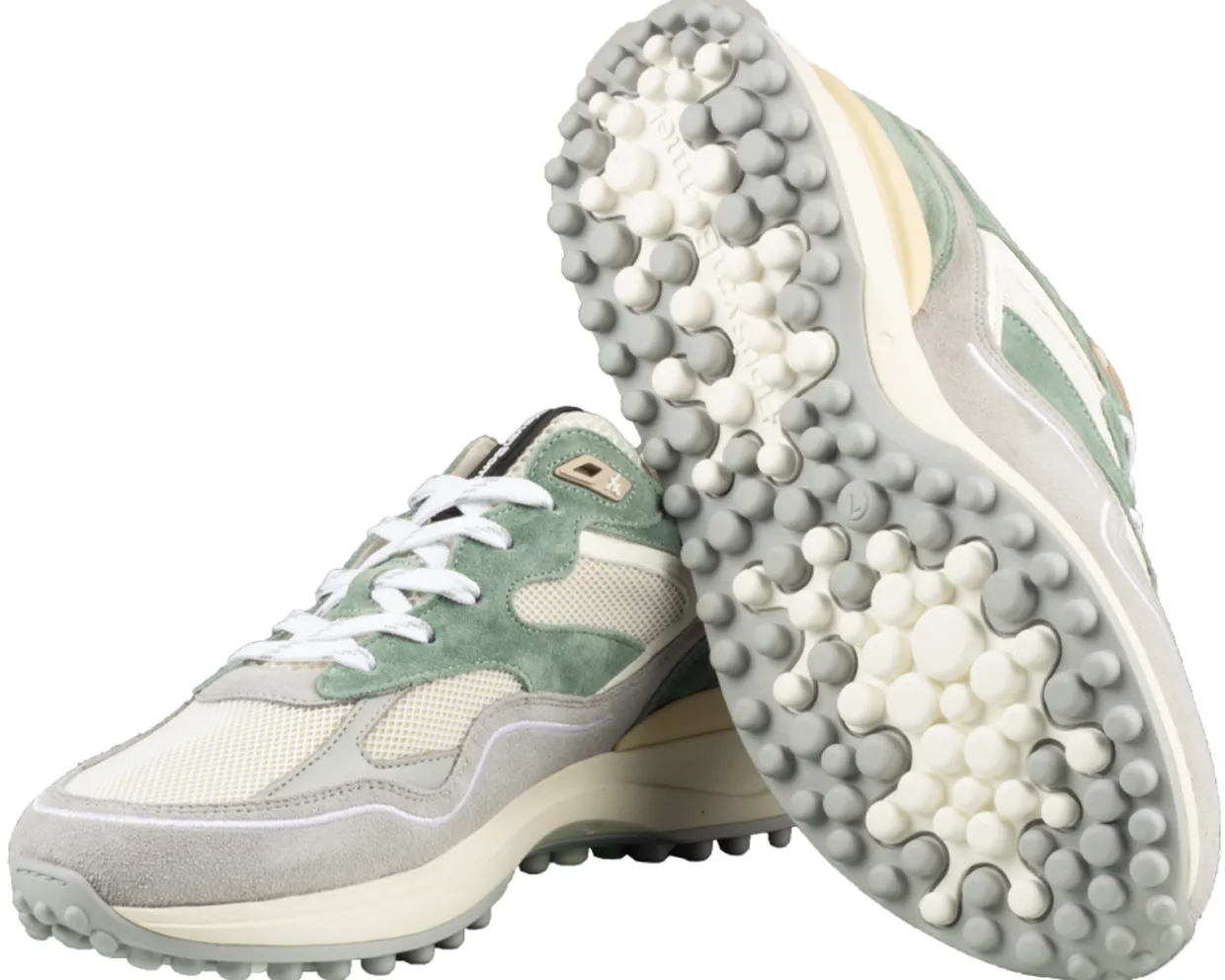 Floris van Bommel Sneakers. Deze Floris van Bommel Noppi 18.37 Sneakers zijn vervaardigd uit uit een combinatie van materialen en hebben een binnenvoering van leer. Deze groene, sportieve heren sneakers zijn afgewerkt met een uitneembare voetbed en een rubberen loopzool.