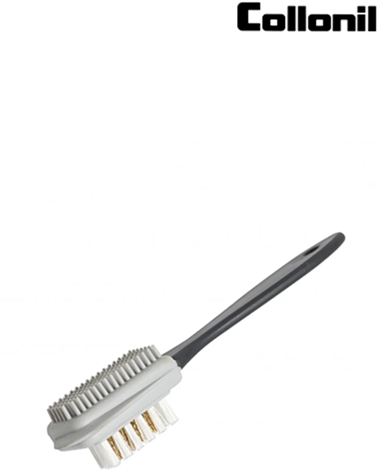 De suède borstel heeft 2 zijden: een ruwe kant om vlekken te verwijderen en een zachte kant om het suède weer mooi op te borstelen. Na het gebruik van het suède borsteltje, adviseren wij u om een suède + nubuck spray te gebruiken.