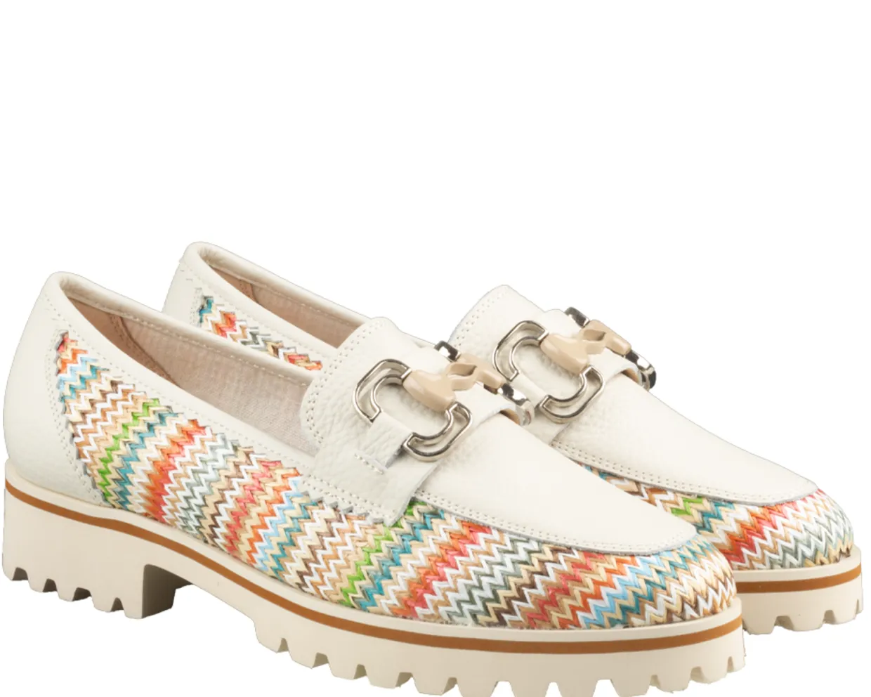 Gioia loafers. Deze Gioia Twinkle Loafers zijn vervaardigd uit een combinatie van materialen. De trendy dames loafers zijn voorzien van een rubberen loopzool en een goudkleurige bitje op de wreef.