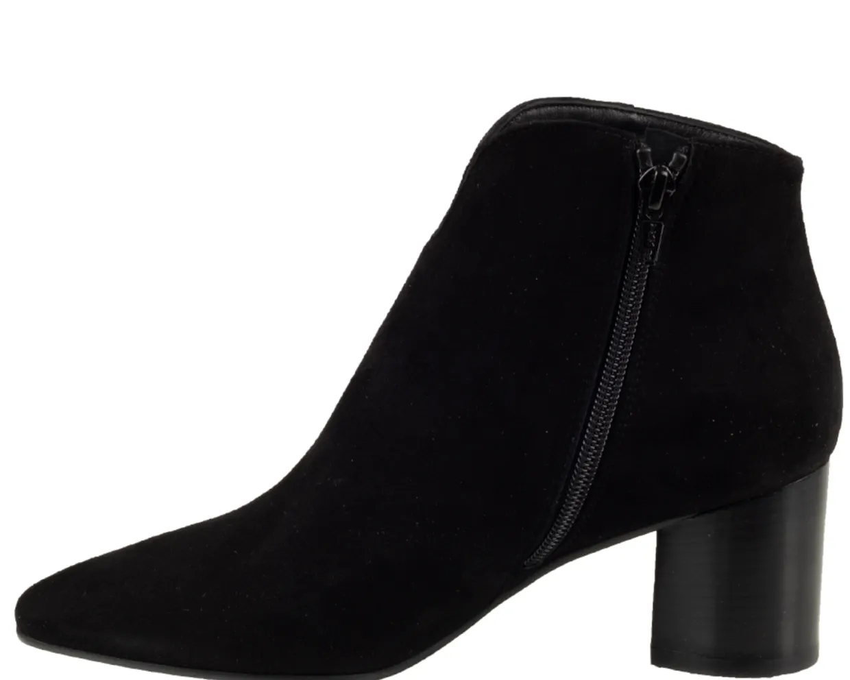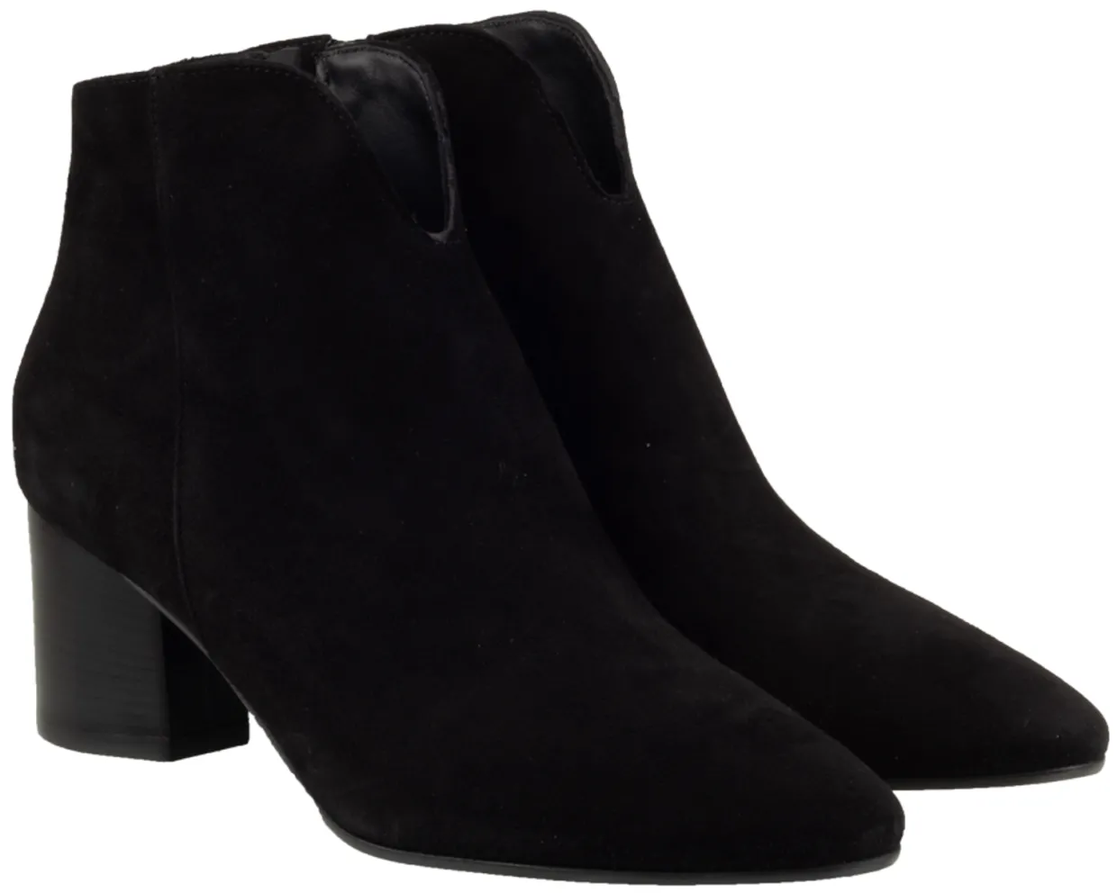 Gioia enkellaarzen. Deze Gioia Valesca enkellaarzen zijn vervaardigd uit suede en hebben een leren binnenvoering. De zwarte, enkellaarzen zijn voorzien van een ritssluiting en een rubberen loopzool. De stijlvolle enkellaarzen zijn afgewerkt met een hak van ongeveer 5 centimeter.