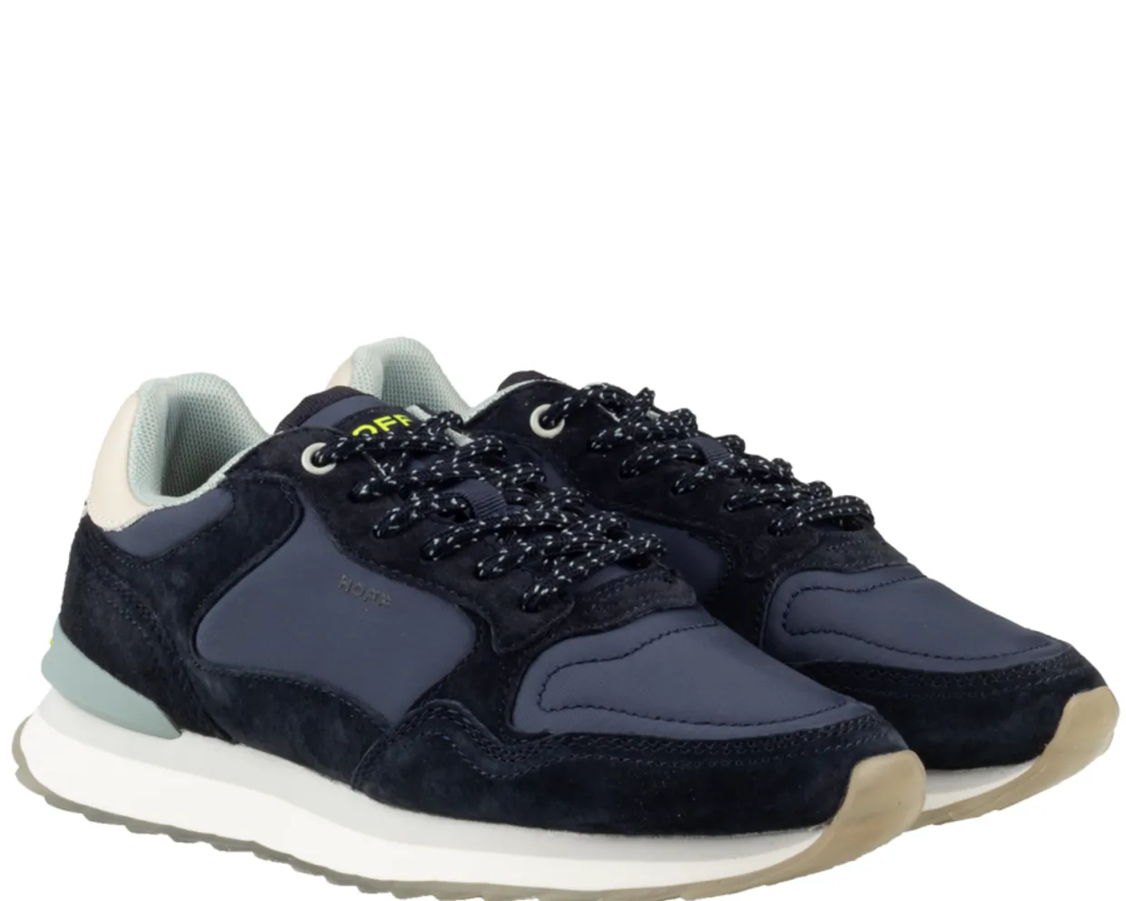 HOFF Sneakers. Deze Hoff City Milano Sneakers zijn vervaardigd uit een combinatie van materialen en hebben een binnenvoering van textiel. De blauwe sportieve damessneakers zijn afgewerkt met een vetersluiting, een uitneembaar voetbed en een rubberen loopzool.
