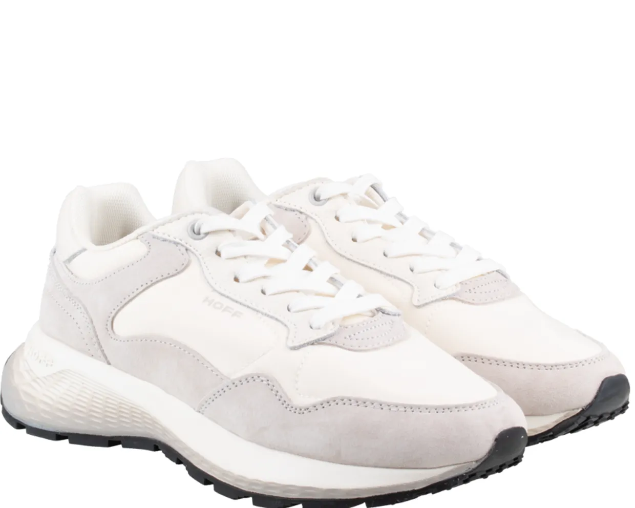 HOFF sneakers. Deze HOFF City MK 2 Quebec Sneakers zijn vervaardigd uit een combinatie van suede, leer en stof en hebben een binnenvoering van textiel. Deze witte, sportieve dames sneakers zijn voorzien van een rubberen loopzool en een uitneembaar memory foam voetbed.