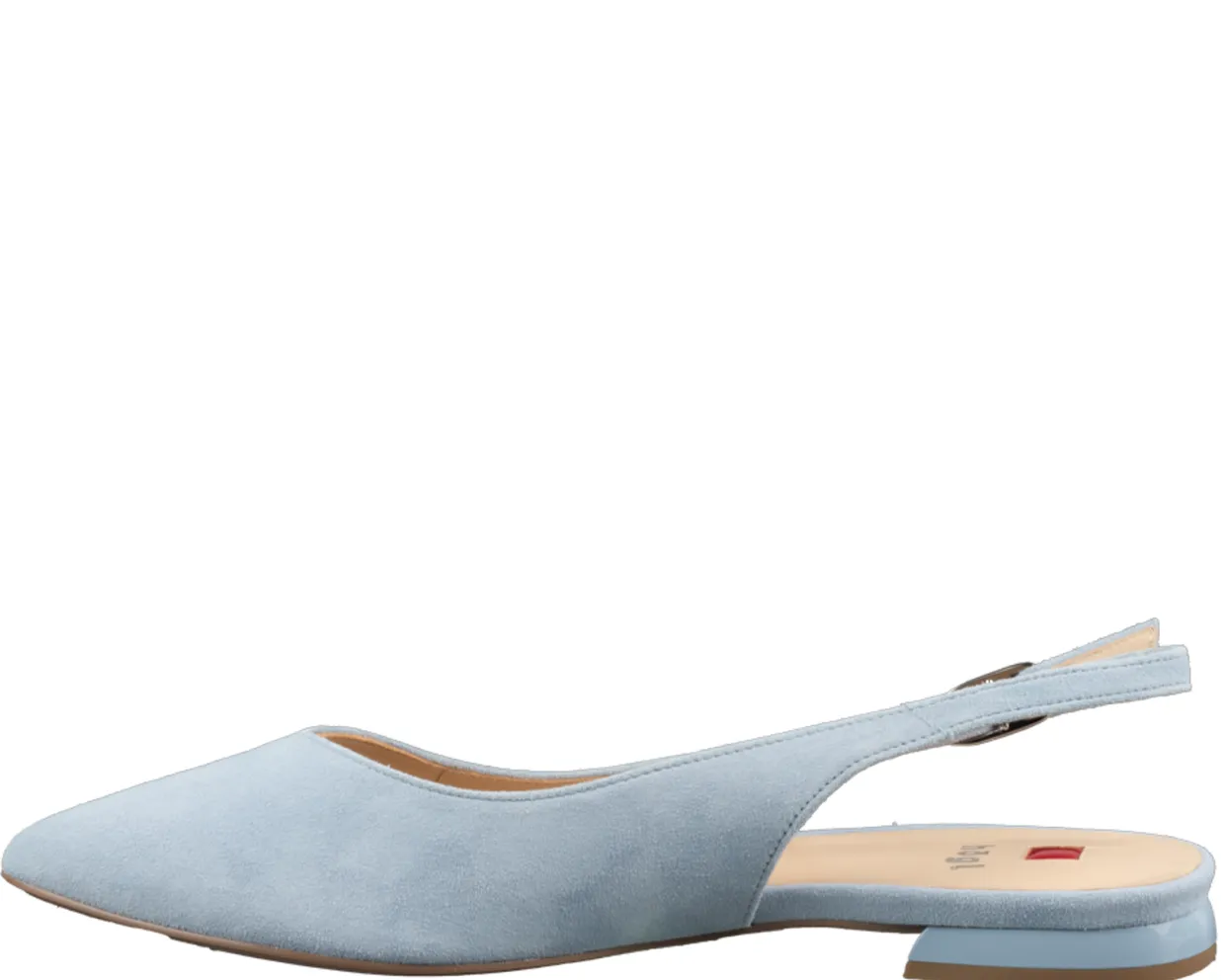 Högl Slings. Deze Högl 100112 Slings zijn vervaardigd uit suede en hebben een binnenvoering van leer. Deze lichtblauwe, trendy dames Slings zijn afgewerkt met een blokhak met een hakhoogte van ongeveer 1cm en en een rubberen loopzool.