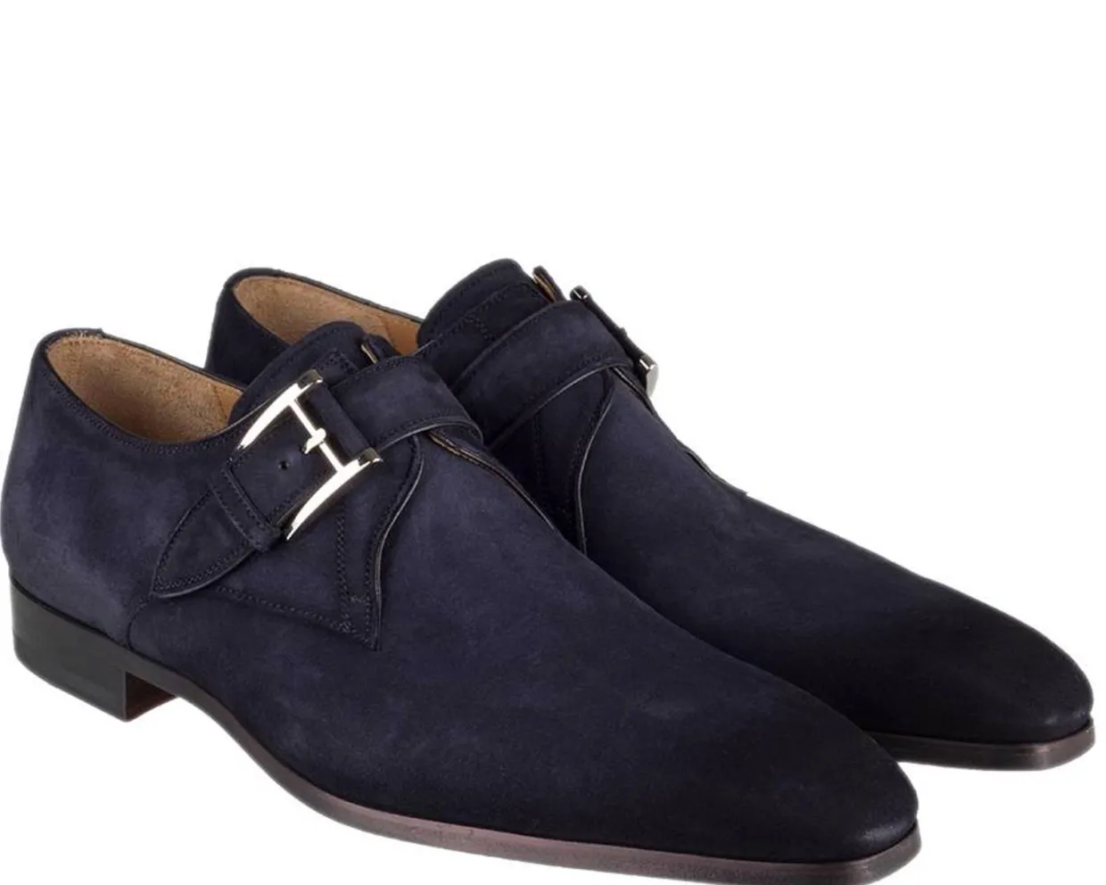 Suède gespschoenen van het Spaanse merk Magnanni. Deze Magnanni herenschoenen zijn vervaardigd uit blauw suède en hebben een mooie zilveren gesp. De binnenvoering en het voetbed van deze Magnanni schoen is gemaakt van leer. In de lederen loopzool is een rubberen inzet geplaatst om snelle slijtage van de loopzool tegen te gaan én om te zorgen voor extra grip bij het lopen. De Magnanni 12718 is ook verkrijgbaar in cognac suède en groen suède.