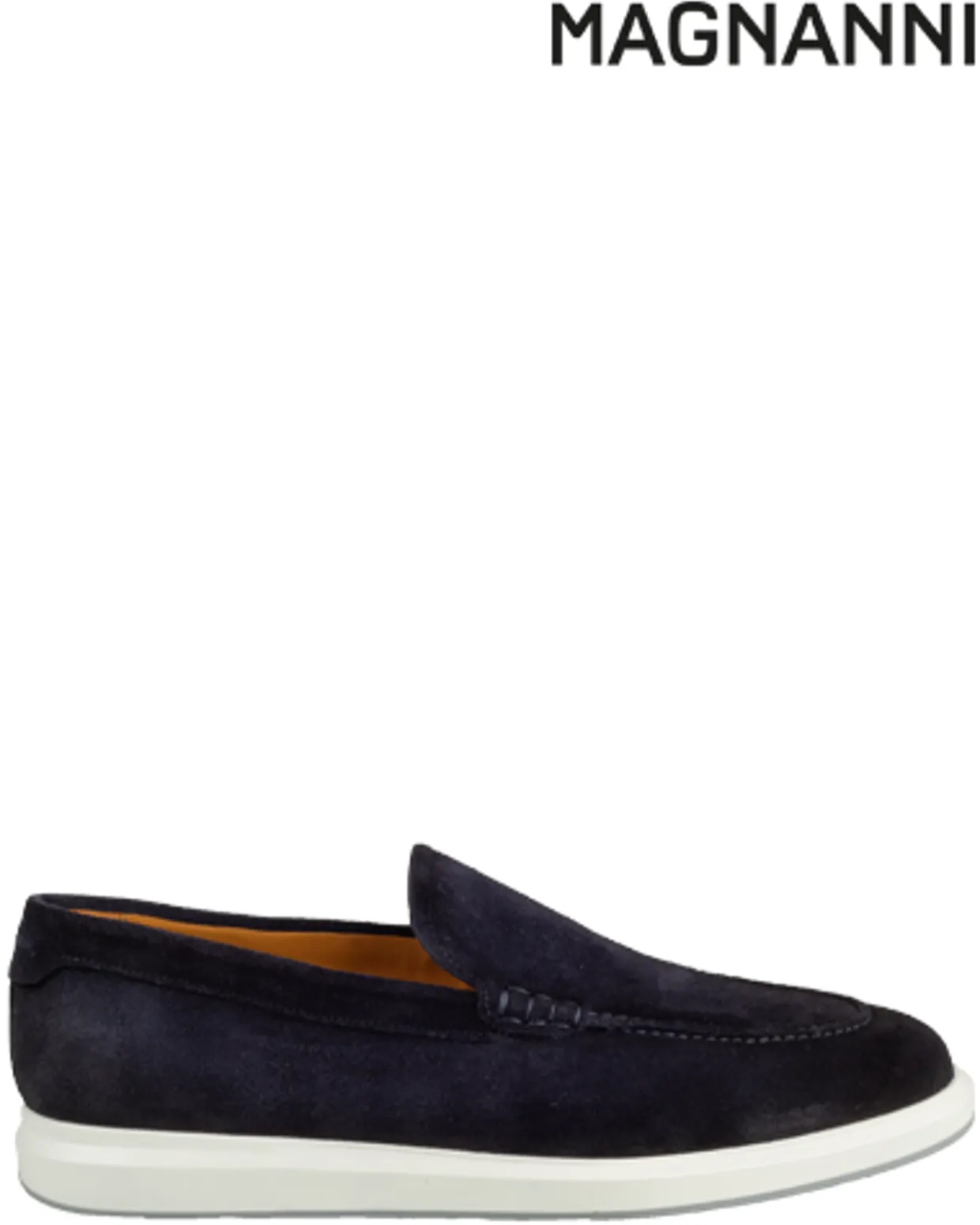 Magnanni Loafers. Deze Magnanni 25615 Loafers zijn vervaardigd uit suede en hebben een binnenvoering van leer. De blauwe sportieve heren loafers zijn afgewerkt met een rubberen loopzool.