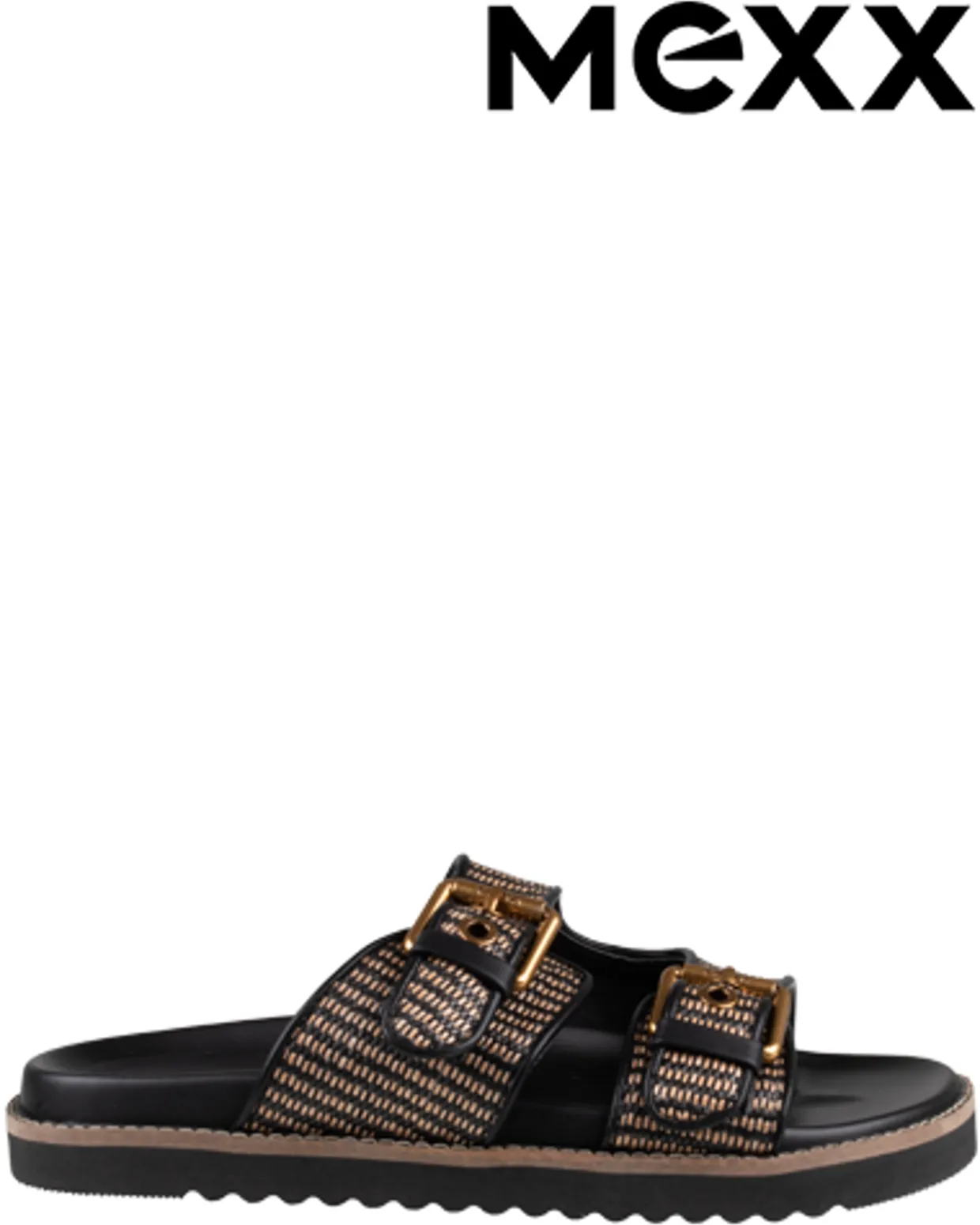 Reilly Penny Slippers. Deze Reily Penny Mexx Slippers zijn vervaardigd uit een combinatie van materialen. Deze trendy dames slippers zijn voorzien van een gespsluiting en een rubberen loopzool. De stijlvolle slippers zijn afgewerkt met een vlechtpatroon. Verkrijgbaar in het zwart en bruin.