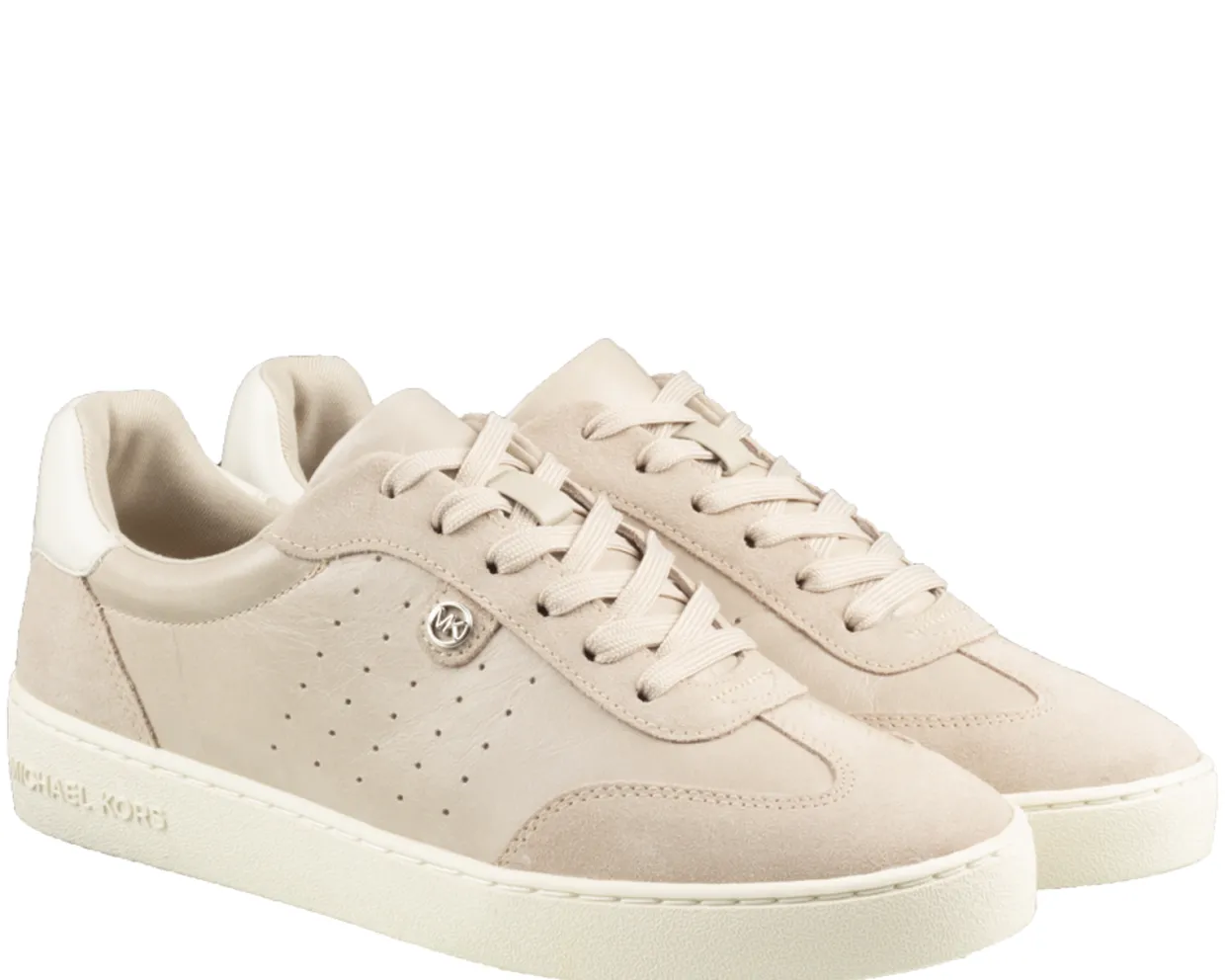 Michael Kors Sneakers. Deze Michael Kors Scotty Lace Up Sneakers zijn vervaardigd uit een combinatie van materialen. De taupe, trendy damessneakers zijn voorzien van een vetersluiting, een uitneembaar voetbed en een rubberen loopzool.