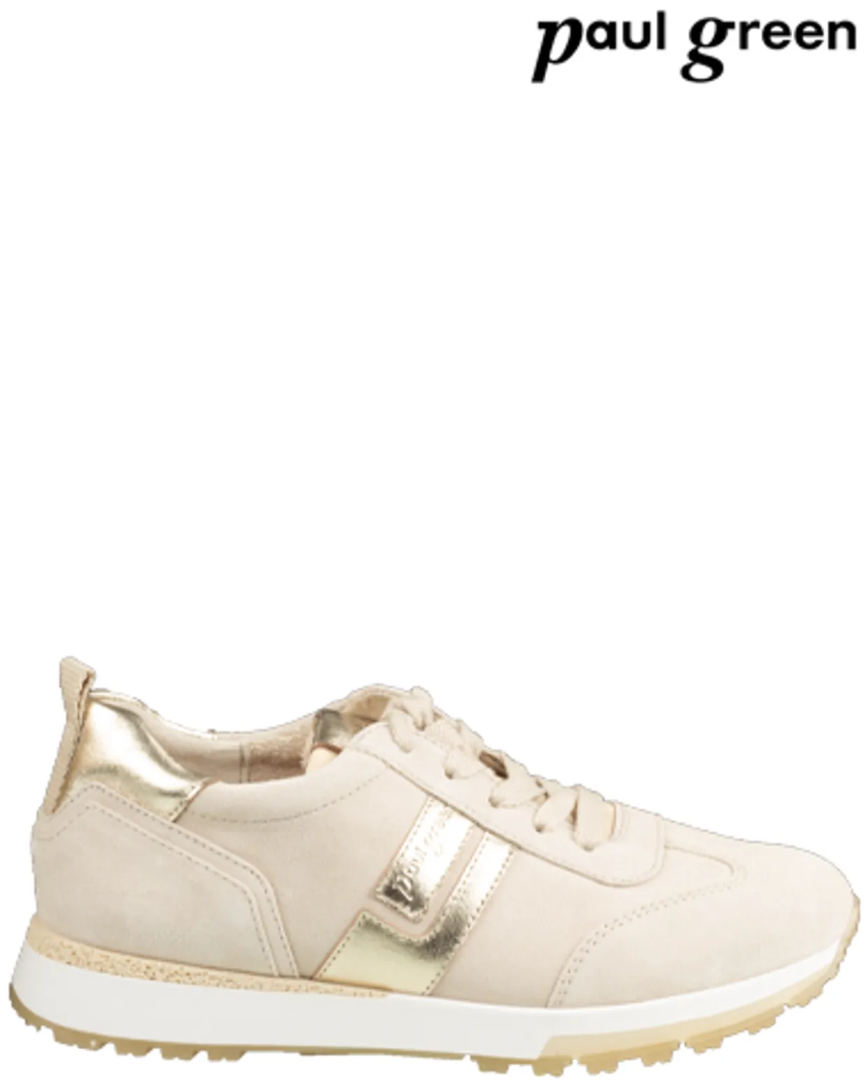 Paul Green sneakers. Deze Paul Green 5392 sneakers zijn vervaardigd uit suede en hebben een badstoffen binnenvoering. De beige, trendy damessneakers zijn voorzien van veters, uitneembare zool en een rubberen loopzool. De trendy sneakers zijn afgewerkt met een mooie blokhak van ongeveer 1 centimeter. Verkrijgbaar in beige.