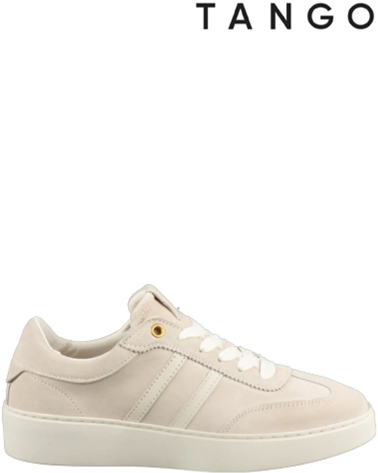 Tango sneakers. Deze Tango Nynke sneakers zijn vervaardigd uit een combinatie van materialen en hebben een leren binnenvoering. De beige trendy damessneakers zijn voorzien van veters, een uitneembaar voetbed en een rubberen loopzool. Verkrijgbaar in het beige.