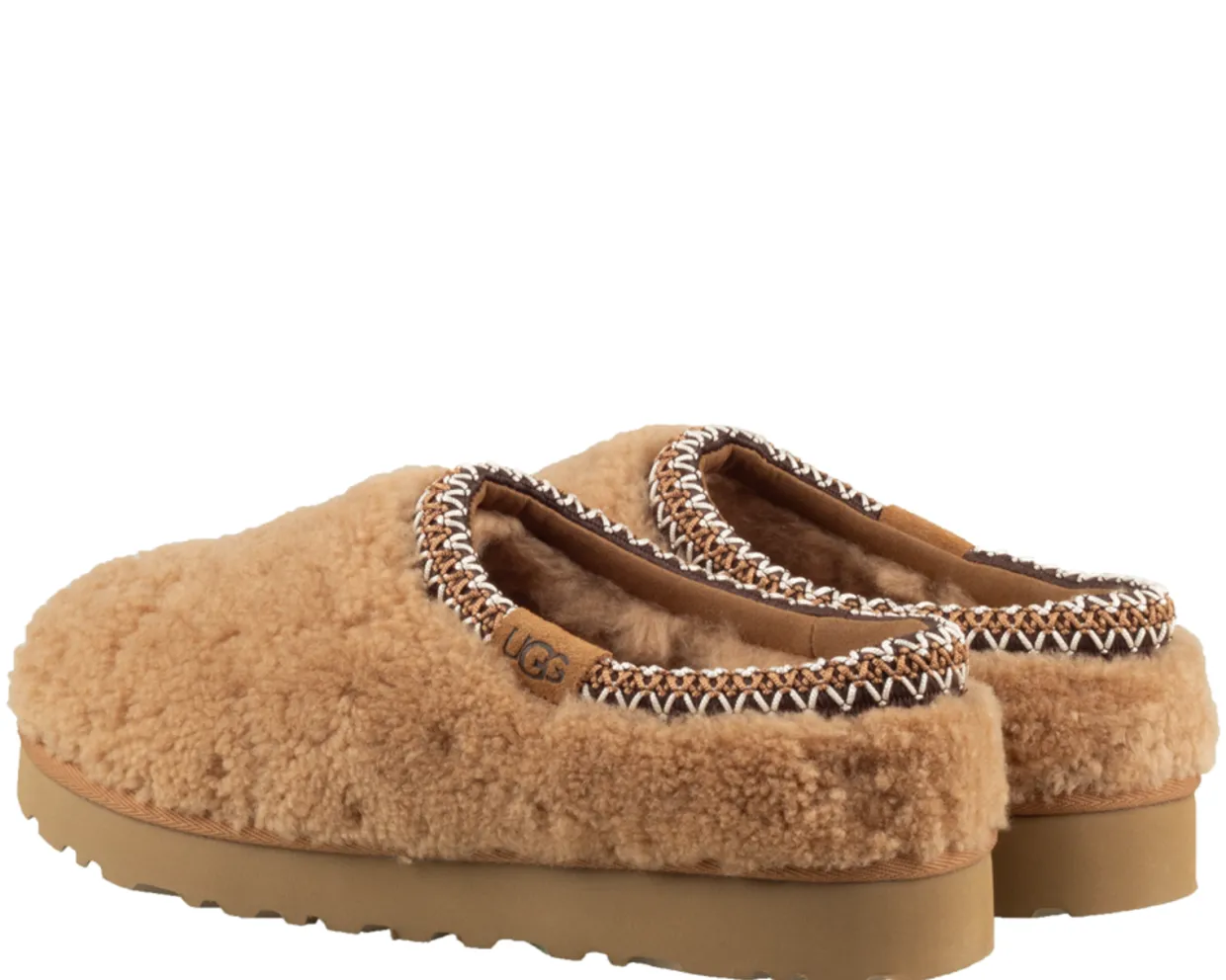 UGG pantoffels. Deze UGG tasman maxi curly pantoffels zijn vervaardigd uit teddy stof en hebben een binnenvoering van schapenvacht. De trendy dames pantoffels zijn afgewerkt met een rubberen loopzool.