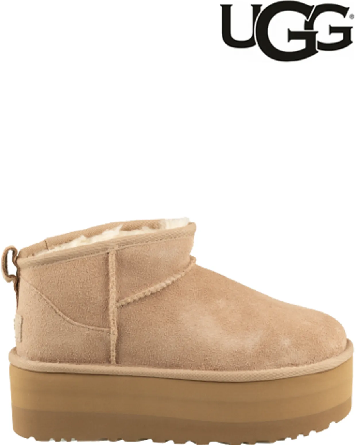 UGG enkellaarzen.Deze UGG Ultra Mini Platform zijn vervaardigd uit suede en hebben een binnenvoering van UGGplush™. Deze trendy boots zijn verder afgewerkt met een rubberen platform loopzool.