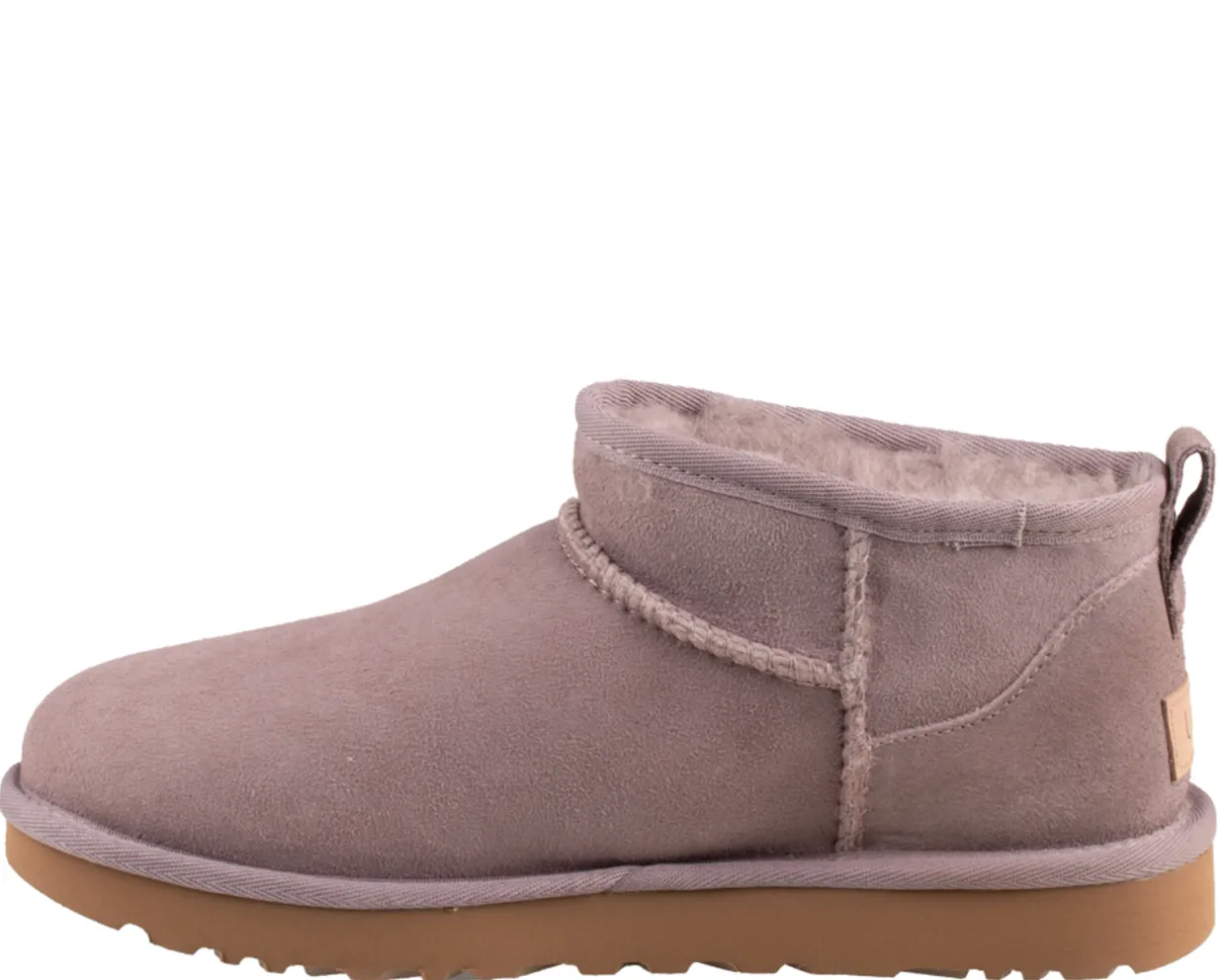 UGG boots. Deze UGG Ultra mini zijn vervaardig uit suede en hebben een binnenvoering van UGGPlush. Deze trendy enkellaarsjes zijn afgewerkt met een rubberen loopzool.