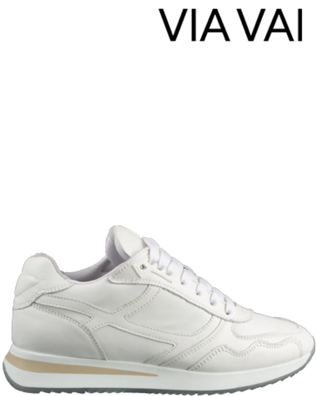 VIA VAI Sneakers. Deze VIA VAI Nora Base Sneakers zijn vervaardigd uit leer en hebben een binnenvoering van textiel. Deze witte trendy dames sneakers zijn afgewerkt met een rubberen loopzool en uitneembaar voetbed.