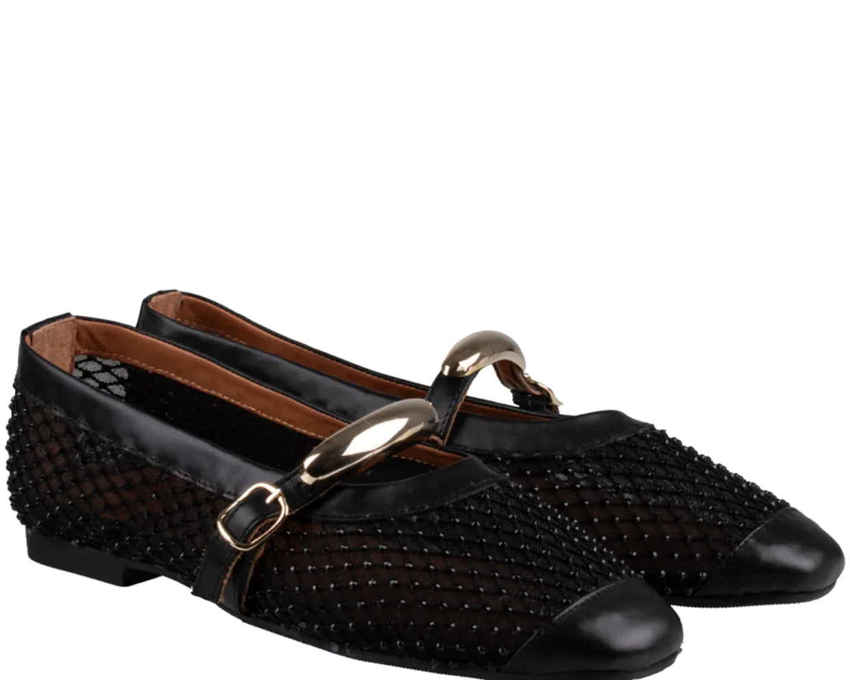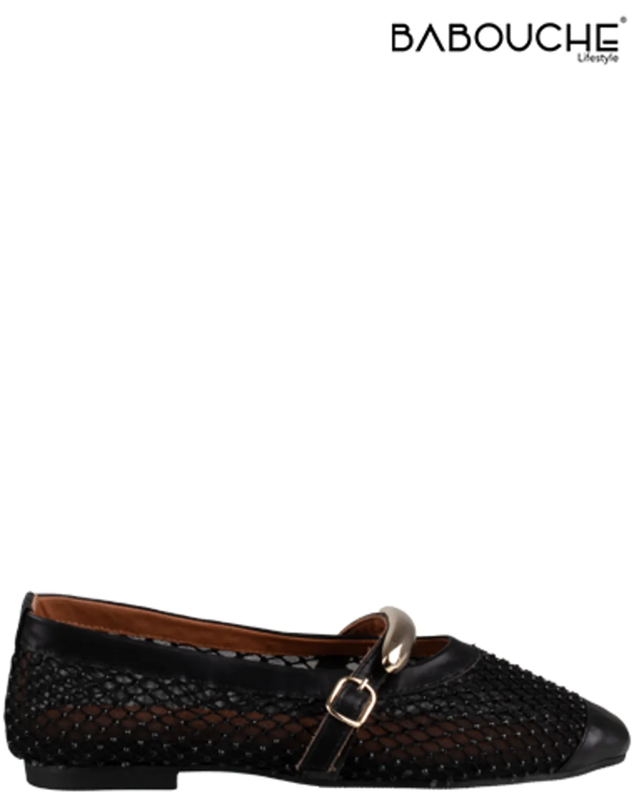 Babouche Ballerina’s. De Babouche Dees Ballerina’s zijn vervaardigd uit een combinatie van materialen. Deze stijlvolle dames ballerina’s zijn afgewerkt met strass steentjes, een gespsluiting en een tunit loopzool.