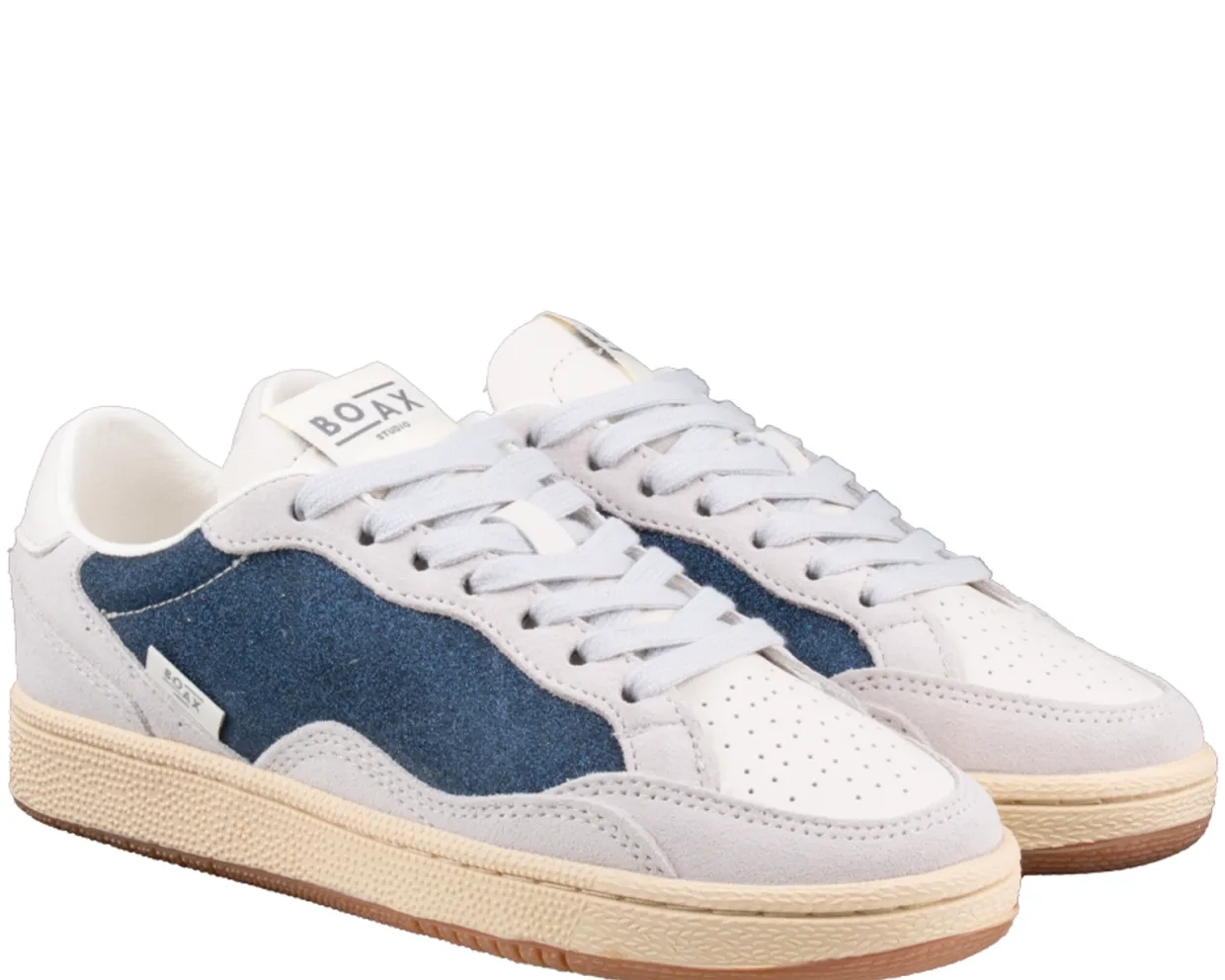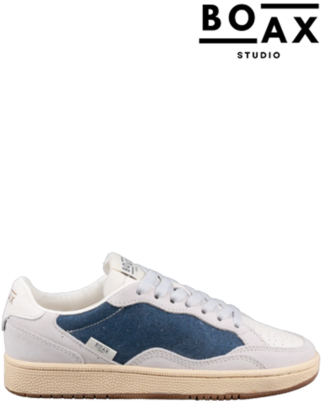 Boax Studio sneakers. Deze Boax Studio Ace sneakers zijn vervaardigd uit leer en hebben een binnenvoering bestaand uit een combinatie van materialen. De blauwe, stijlvolle dames sneakers zijn voorzien van veters, een uitneembaar voetbed en een rubberen loopzool. Verkrijgbaar in het blauw.