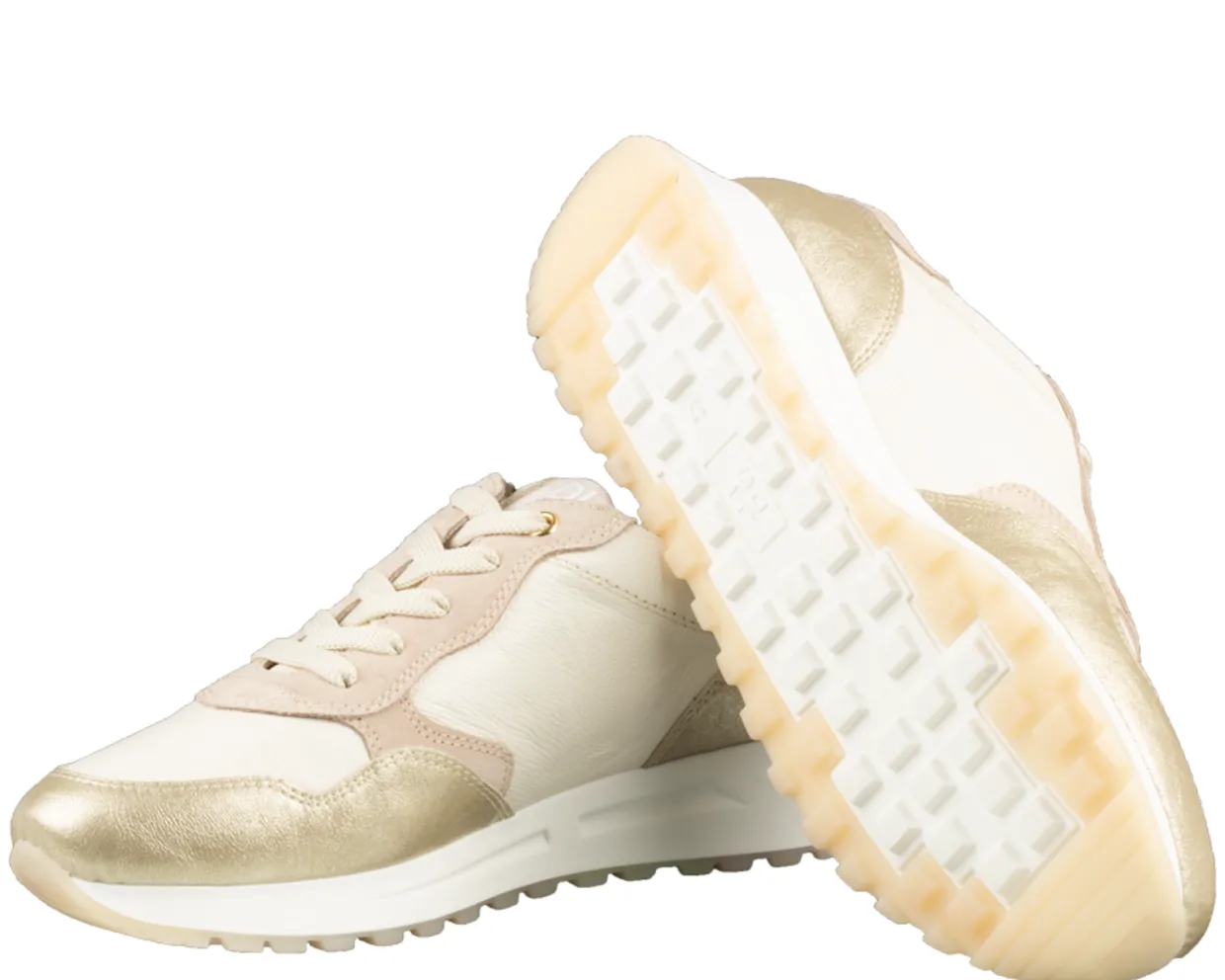 DL Sport sneakers. Deze DL Sport 6527 sneakers zijn vervaardigd uit een combinatie van materialen en hebben een leren binnenvoering. De witte trendy dames sneakers zijn voorzien van veters, een uitneembaar voetbed en een rubberen loopzool. Verkrijgbaar in het wit en platina gekleurd.