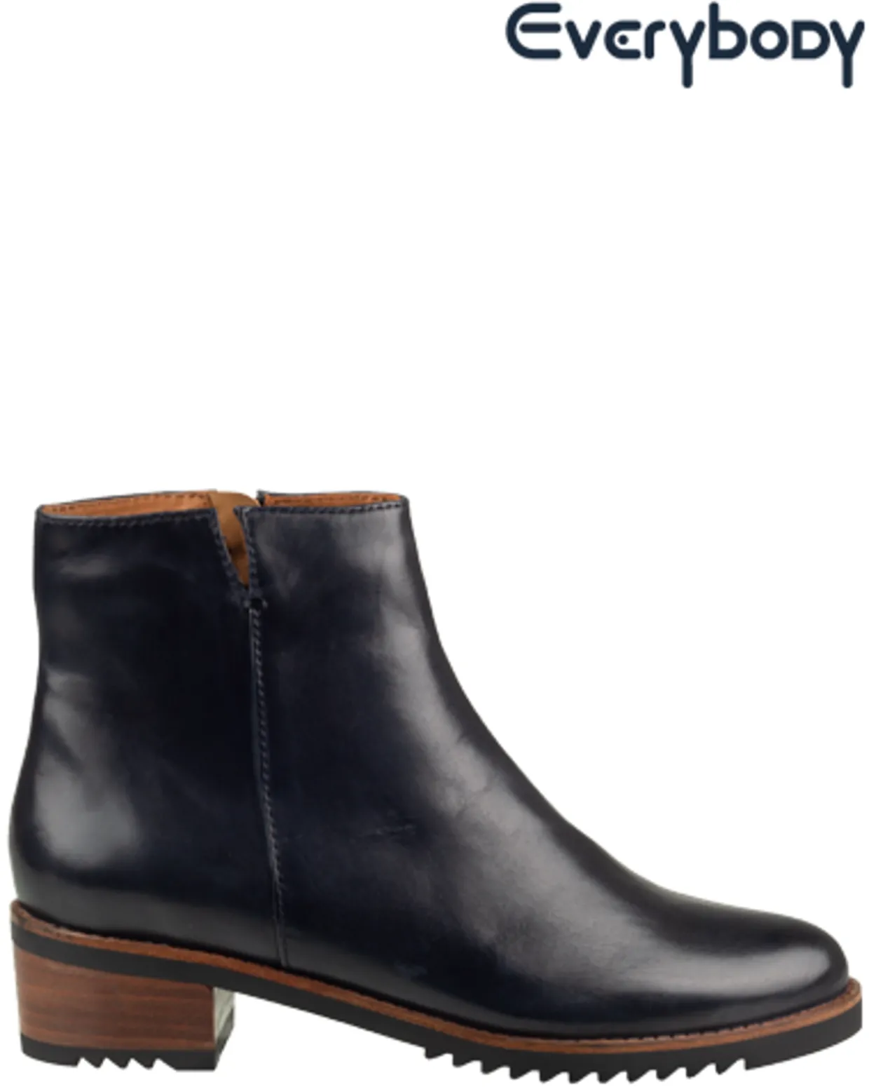 Everybody enkellaarzen. Deze Everbody Belport enkellaarzen zijn vervaardigd uit soepel leer en hebben een binnenvoering van zacht imitatiebont. De blauwe, comfortabele enkellaarzen zijn voorzien van een ritssluiting en een rubberen loopzool. De comfortabele enkellaarzen zijn afgewerkt met een hak van ongeveer 4 centimeter.