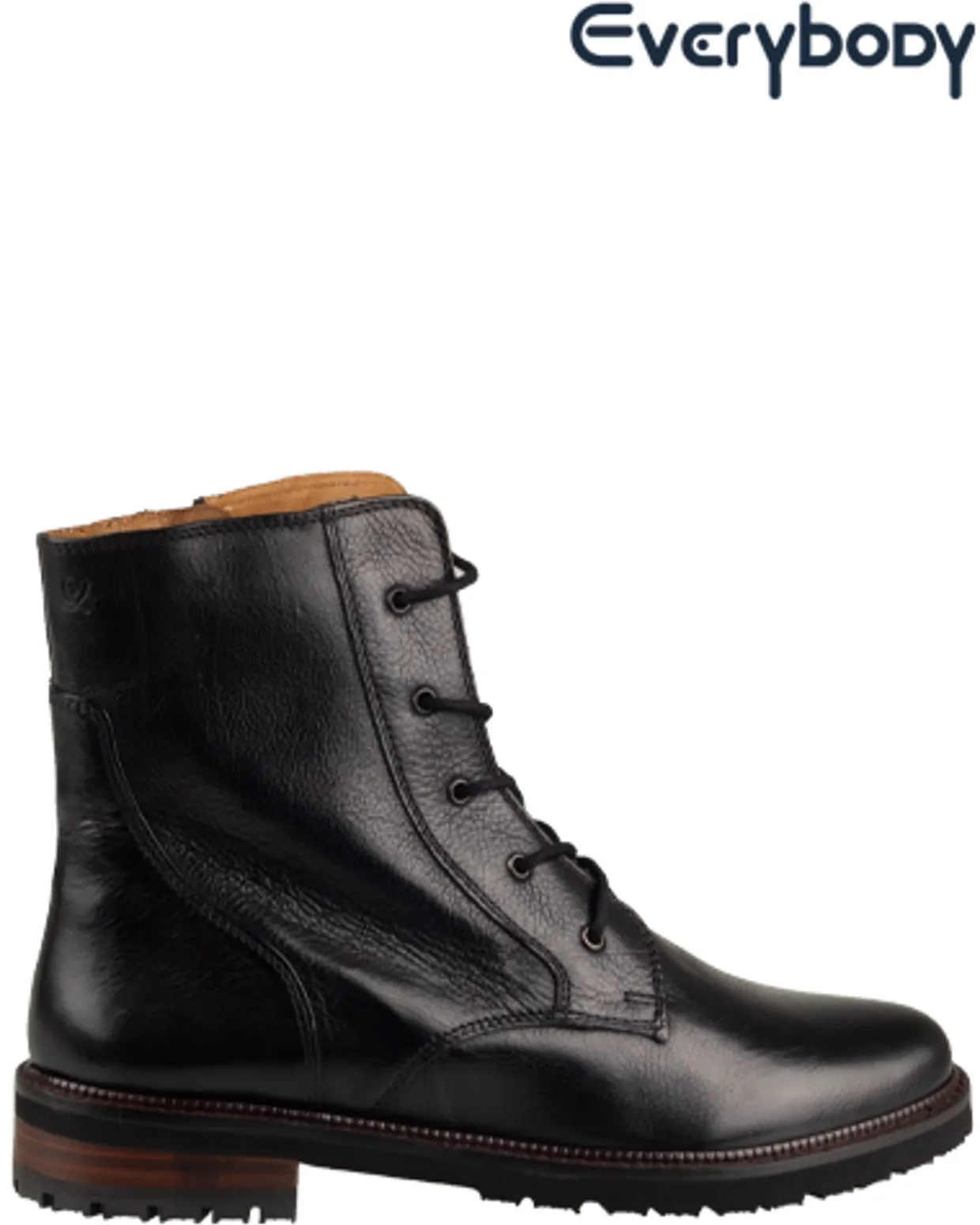 Everybody Enkellaarzen. Deze Everybody Nastro Enkellaarzen zijn vervaardigd uit leer en hebben een binnenvoering van imitatie bont. De warme enkellaarzen zijn afgewerkt met een vetersluiting en een rubberen loopzool. verkrijgbaar in de kleuren groen en zwart.