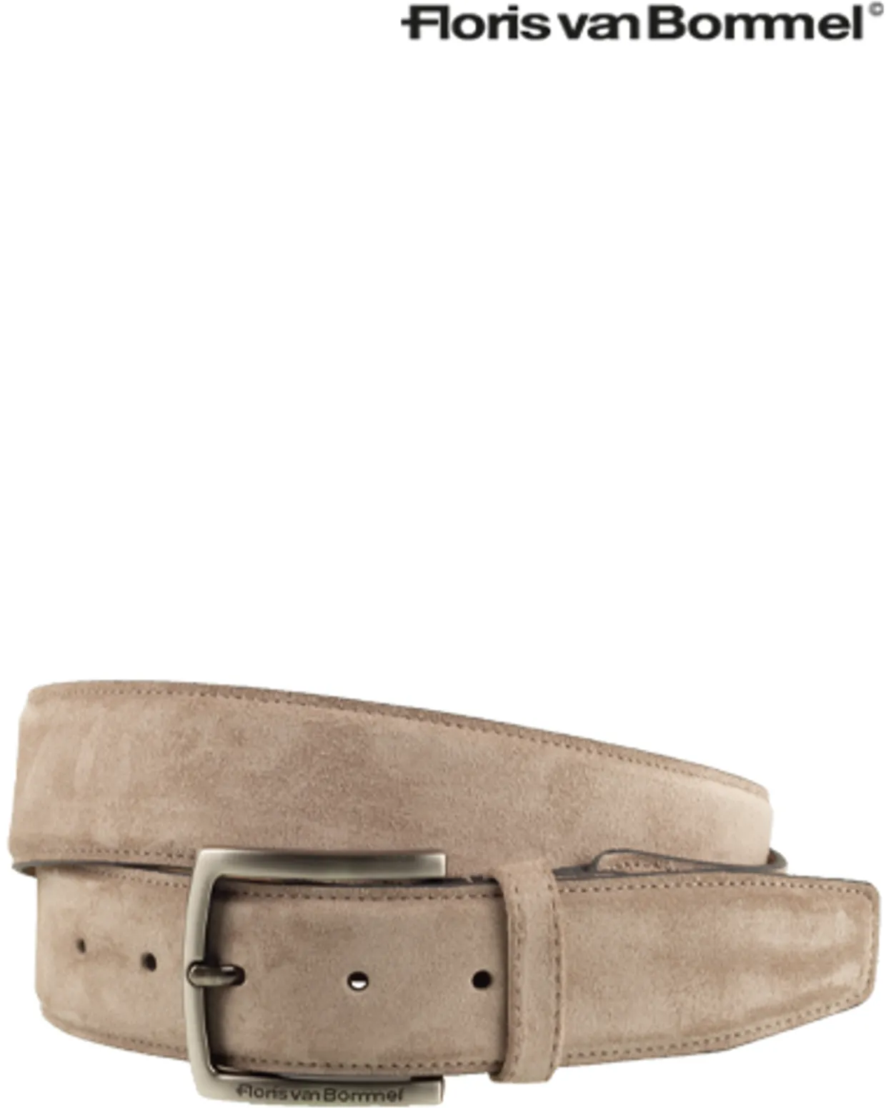 Floris van Bommel riem. Deze Floris van Bommel De Belter 66.66 Riem is vervaardigd uit suède en is voorzien van een zilverkleurige gespsluiting. Verkrijgbaar in het beige en taupe.