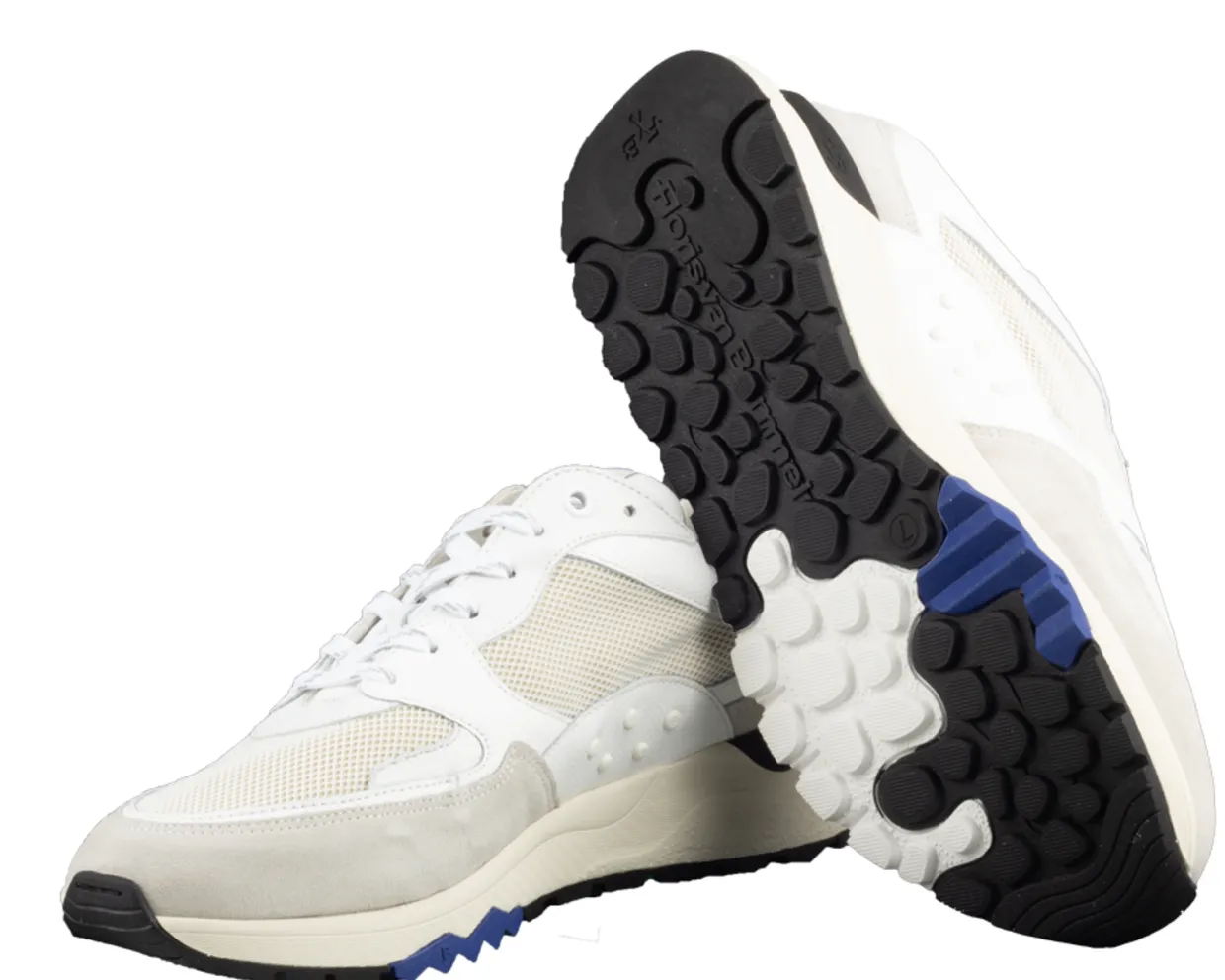 Floris van Bommel Sneakers. Deze Floris van Bommel De Treener 01.03 Sneakers zijn vervaardigd uit uit een combinatie van materialen en hebben een binnenvoering van leer. Deze witte, sportieve heren sneakers zijn afgewerkt met een uitneembare voetbed en een rubberen loopzool.