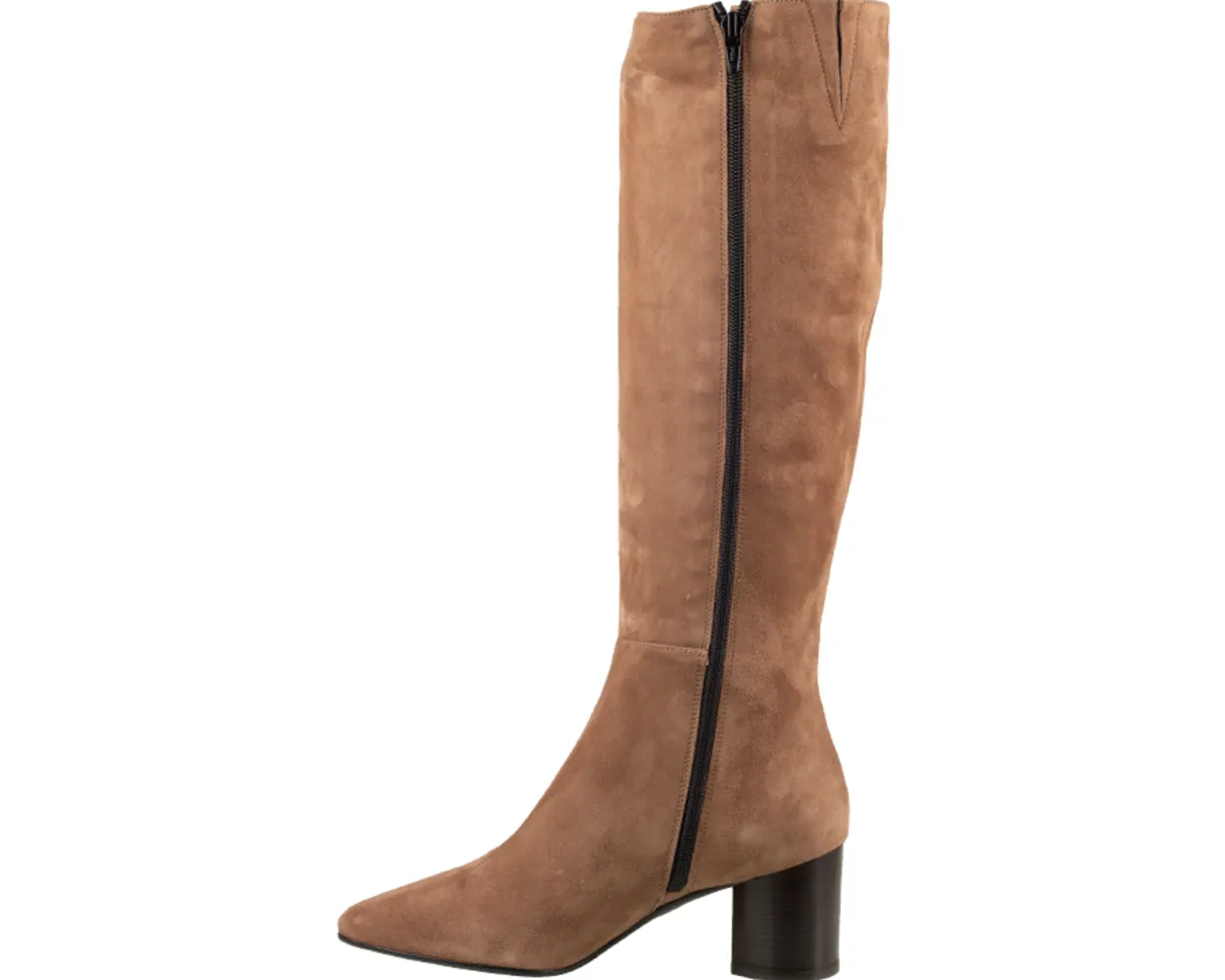 Gioia laarzen. Deze Gioia Valentina laarzen zijn vervaardigd uit suede en hebben een leren binnenvoering. De taupe, laarzen zijn voorzien van een ritssluiting en een tunit loopzool. De stijlvolle laarzen zijn afgewerkt met een hak van ongeveer 5 centimeter.