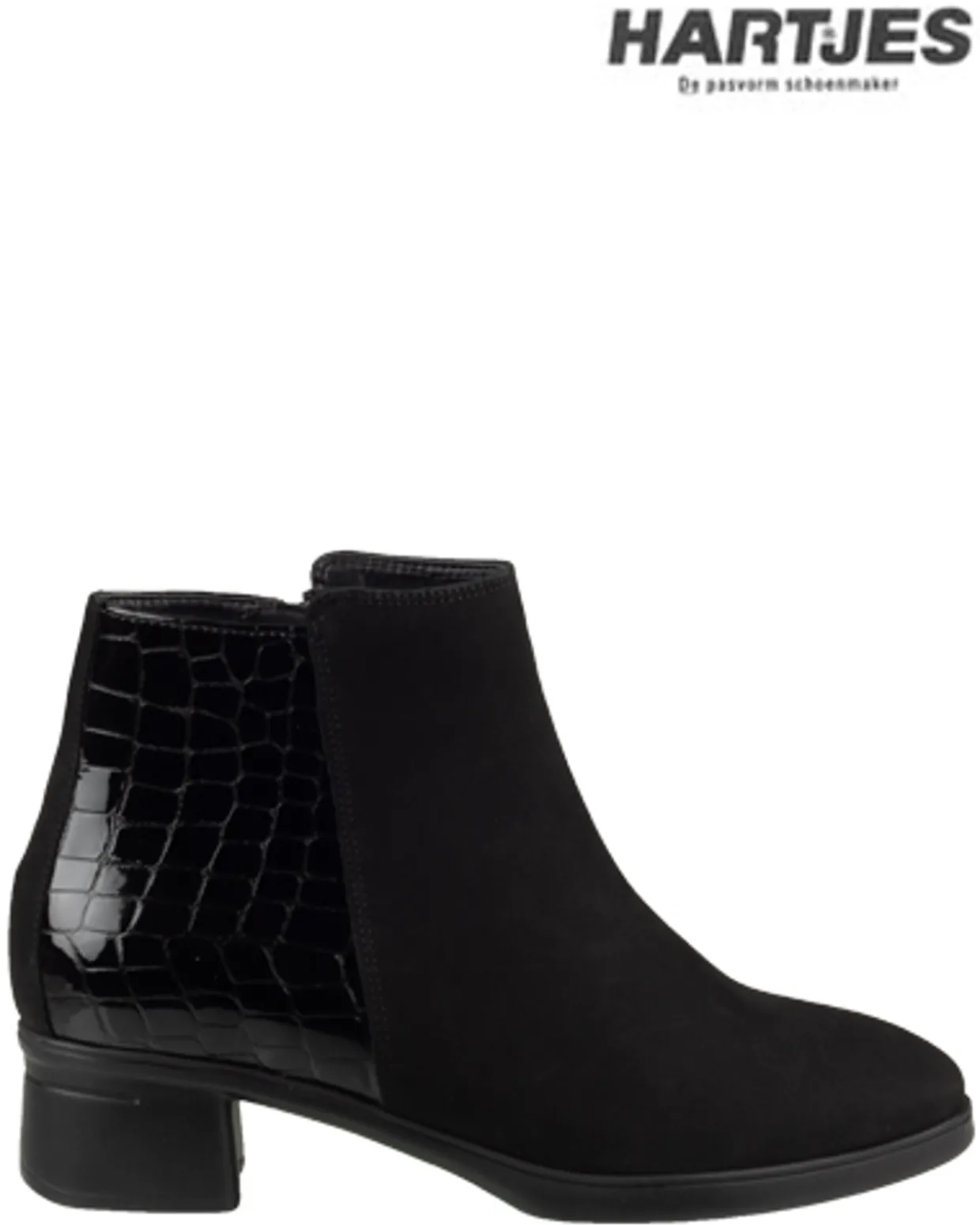 Hartjes Enkellaarzen. Deze Hartjes Blues enkellaarzen zijn vervaardigd uit een combinatie van nubuck en lak en hebben een binnenvoering van leer. Deze comfortabele dames laarsjes zijn verder afgewerkt met een ritssluiting en een rubberen loopzool. Verkrijgbaar in de kleuren zwart en blauw.