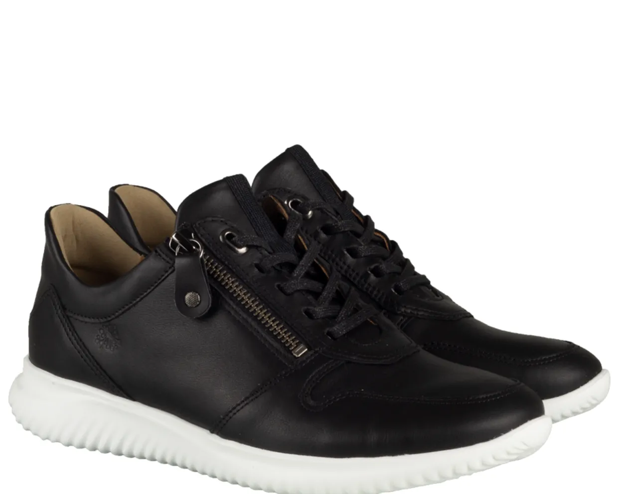 Hartjes dames sneakers. Deze Hartjes Breeze sneakers zijn vervaardigd uit zwart leder en hebben een leren binnenvoering. De comfortabele, zwarte dames sneakers zijn voorzien van een uitneembaar voetbed en afgewerkt met een rubberen loopzool. Deze sneakers trekt u zeer gemakkelijk aan en uit dankzij de ritssluiting aan de buitenzijde.