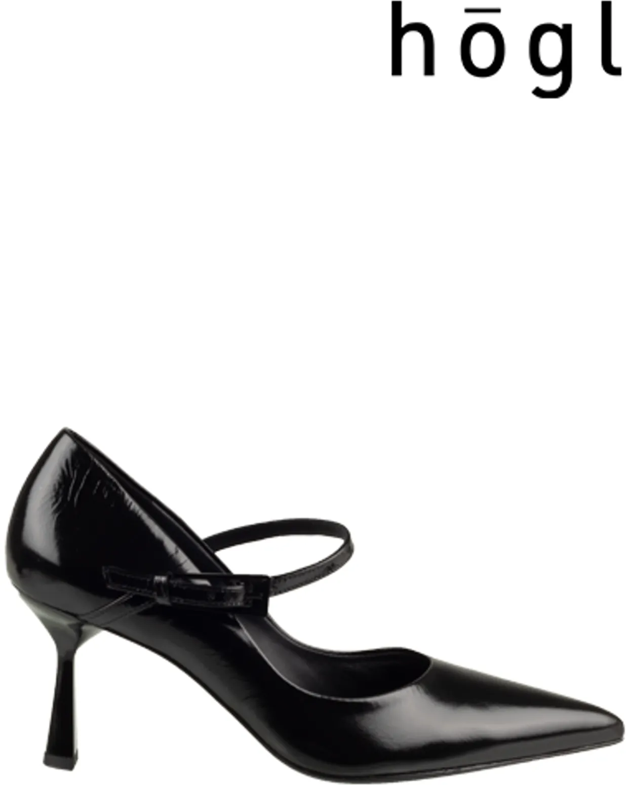 Hogl pumps. Deze hogl 8107716 pumps zijn vervaardigd uit lakleer en hebben een leer voor de binnenvoering. De trendy dames pumps hebben een hak van 7cm en een rubberen loopzool. De pump heeft een gesp sluiting.