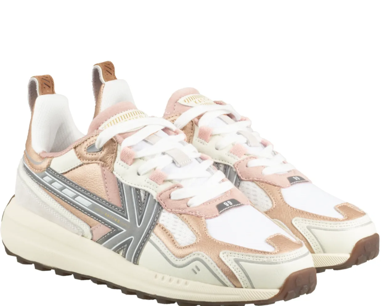 Kaotiko sneakers. Deze Kaotiko Detroit Tech sneakers zijn vervaardigd uit een combinatie van materialen en hebben een textielen binnenvoering. De groene, trendy dames sneakers zijn voorzien van veters, een uitneembaar voetbed en een rubberen loopzool. verkrijgbaar in het groen, roze en goudkleurig.
