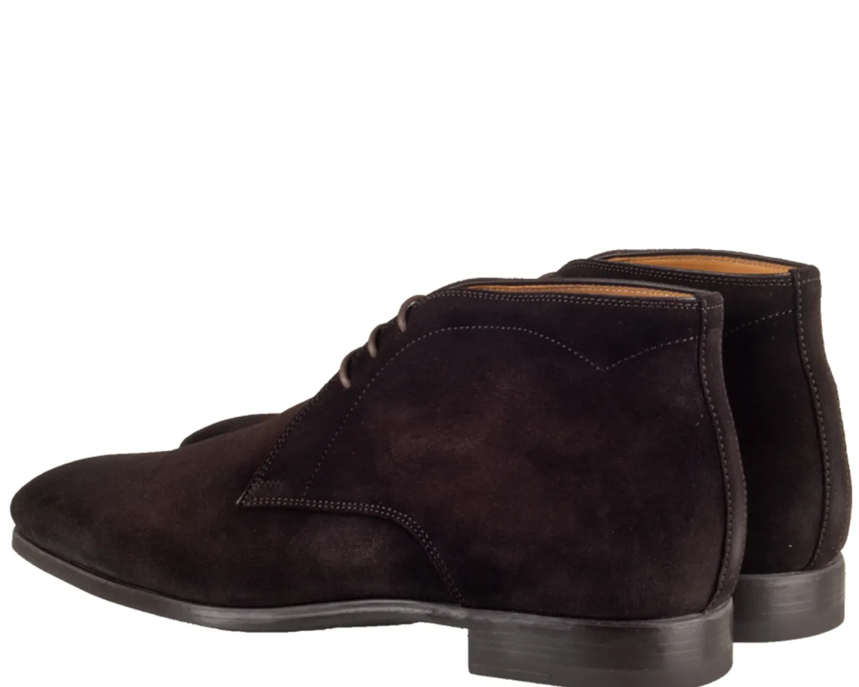 Halfhoge herenschoen van het merk Magnanni. De Magnanni 17589 is vervaardigd uit suède en heeft een lederen binnenvoering. Deze donker bruine herenschoenen hebben een rubberen anti-slipzool. Dit model is ook verkrijgbaar in cognac suède en blauw suède.