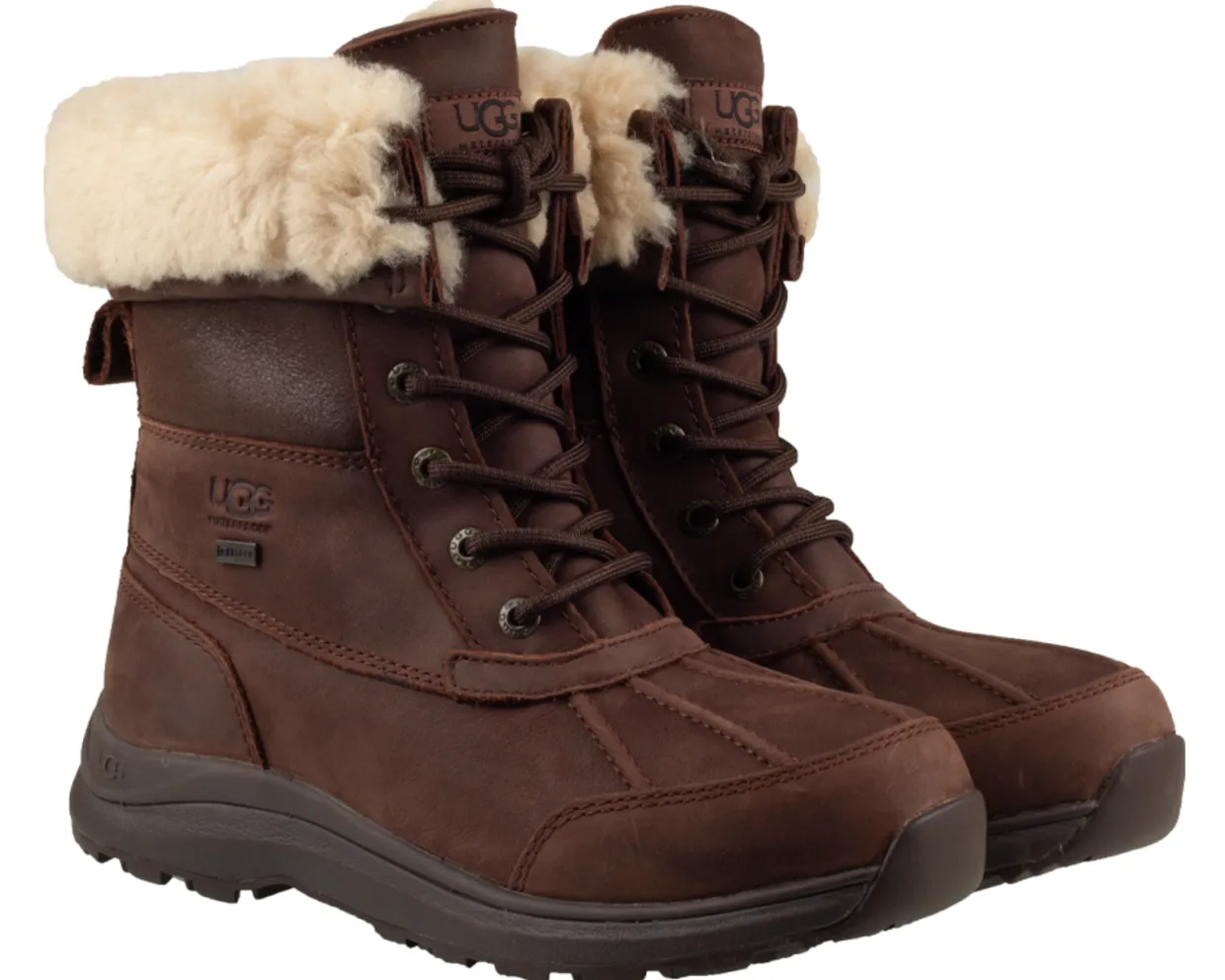 UGG enkellaarzen. Deze UGG enkellaarzen zijn vervaardigd uit een combinatie van waterdicht leer en suede en hebben een binnenvoering van schapenvacht. De comfortabele enkellaarzen zijn voorzien van een rubberen loopzool. De waterdichte Adirondack III heeft een buitenzool die speciaal is ontworpen om in ijskoude temperaturen flexibel te blijven. Hij heeft ook extra warme isolatie, een dempende inlegzool en is beter bestand tegen koud weer: van -20 ˚C naar -32 ˚C. Ideaal voor wandeltochten in de bergen, de stad en alles daartussenin – van deze laarzen zul je nog jaren plezier hebben.
