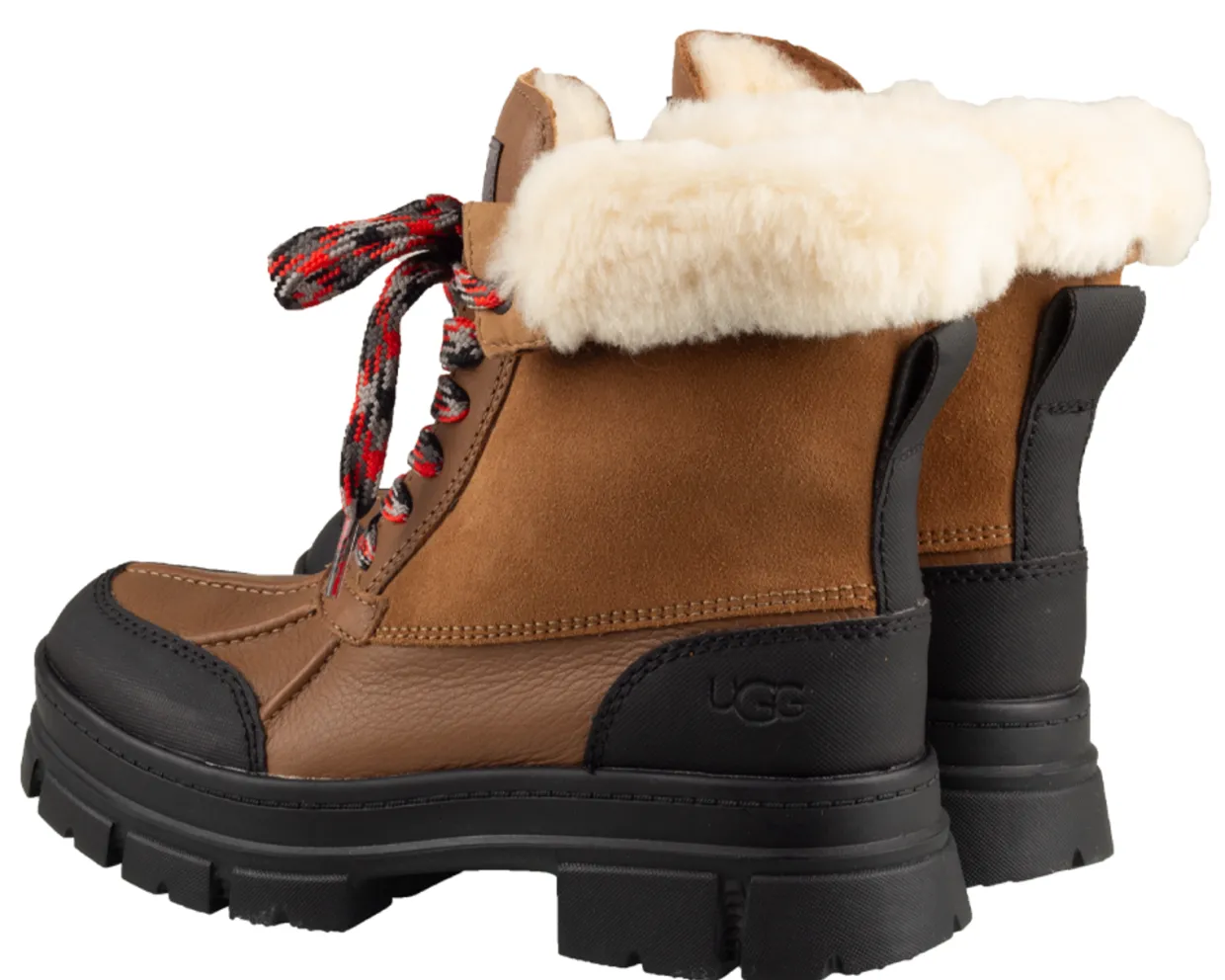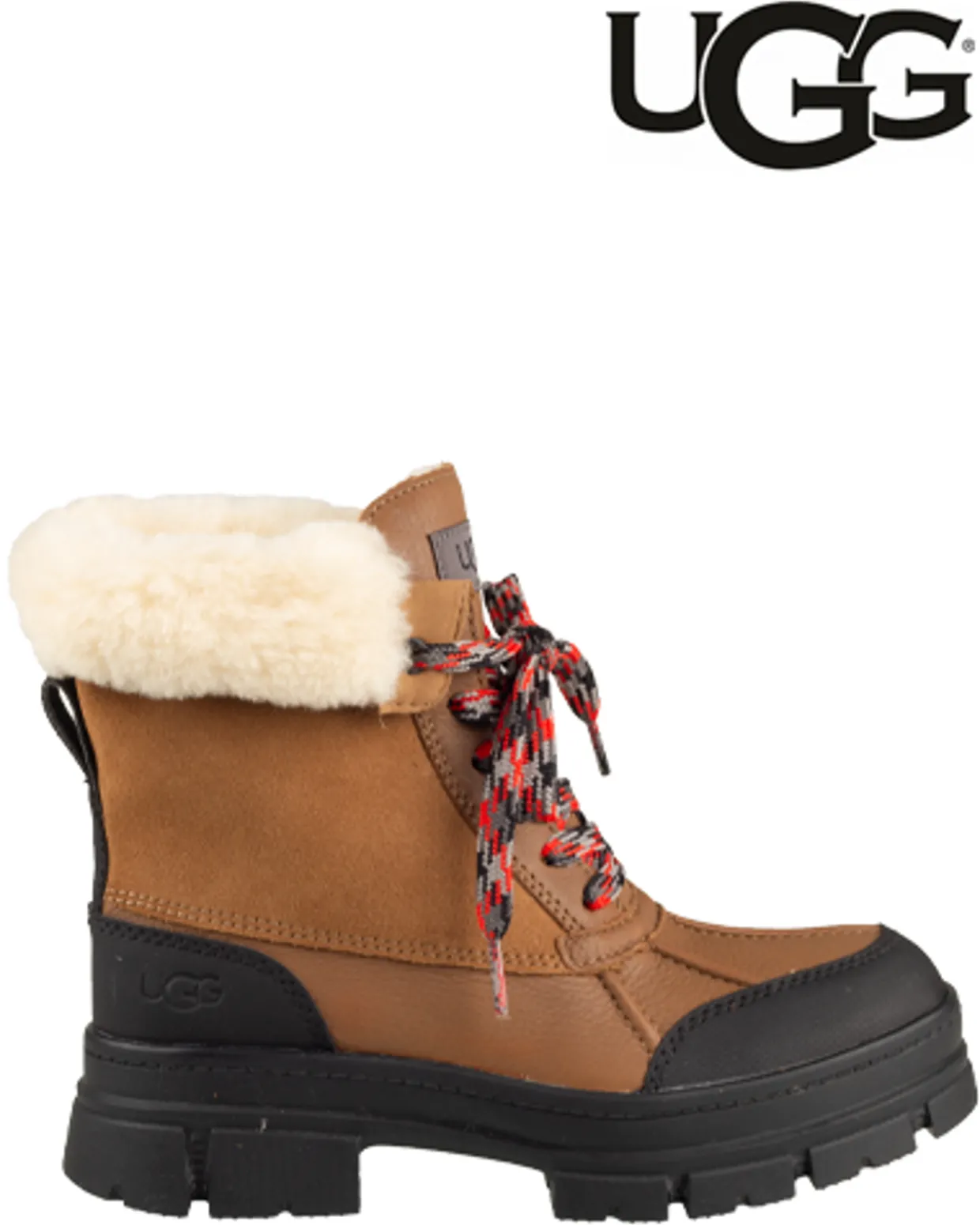 UGG Ashton schoenen. Deze UGG Ashton Addie winter boots zijn vervaardigd uit een combinatie van materialen en hebben een binnenvoering van zacht imitatiebont. De cognac veterboots zijn voorzien van een rubberen loopzool. Deze waterbestendige UGG laarzen zijn geschikt voor lage temperaturen tot wel -20 °C.