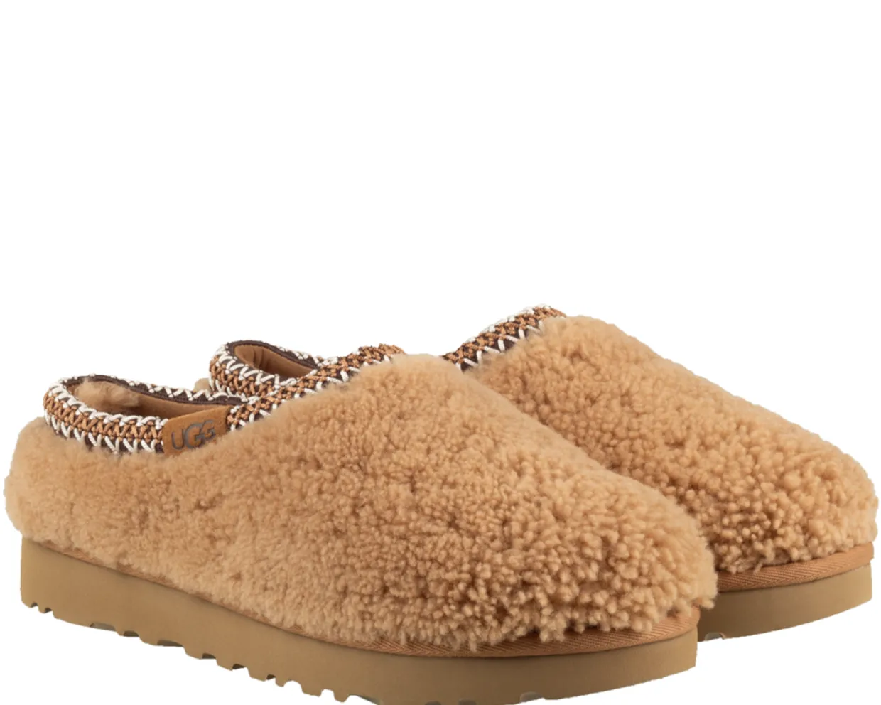 UGG pantoffels. Deze UGG tasman maxi curly pantoffels zijn vervaardigd uit teddy stof en hebben een binnenvoering van schapenvacht. De trendy dames pantoffels zijn afgewerkt met een rubberen loopzool.