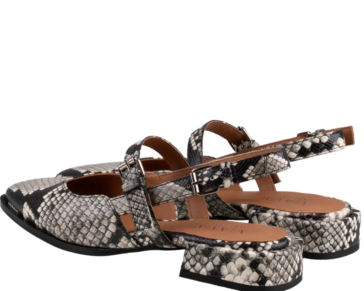 Deze VIA VAI Jazz Valerie Slings zijn vervaardigd uit leer met een leuke python print. De slingbacks hebben een binnenvoering van leer. De trendy dames slings met slangen print zijn voorzien van een tunit loopzool en een blokhak met een hakhoogte van ongeveer 2 cm.