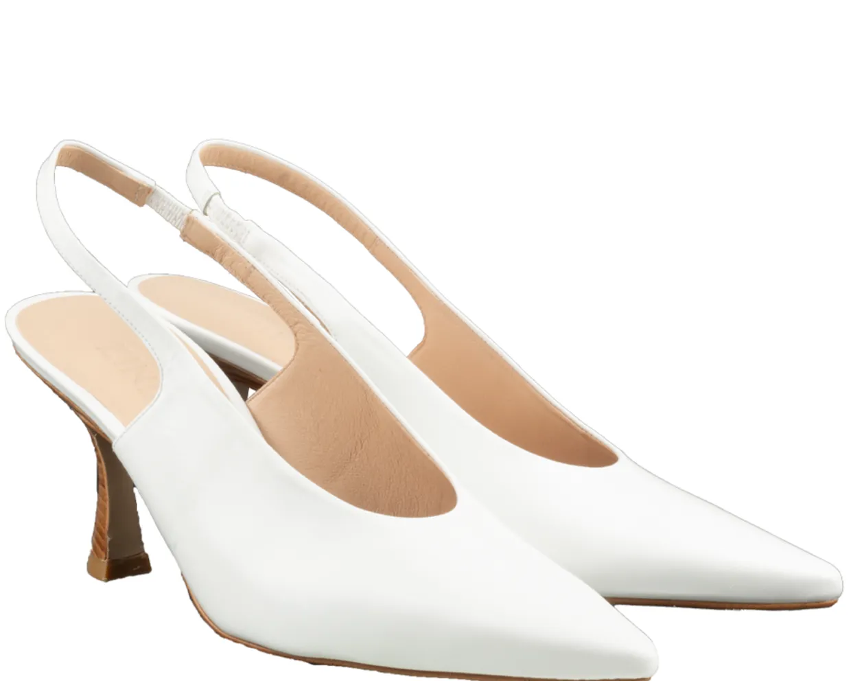 Zinda Slings. Deze Zinda 3109 Slings zijn vervaardigd uit leer en hebben een leren binnenvoering. De witte, trendy slings zijn voorzien van een rubberen loopzool en een hak van ongeveer 5 cm.